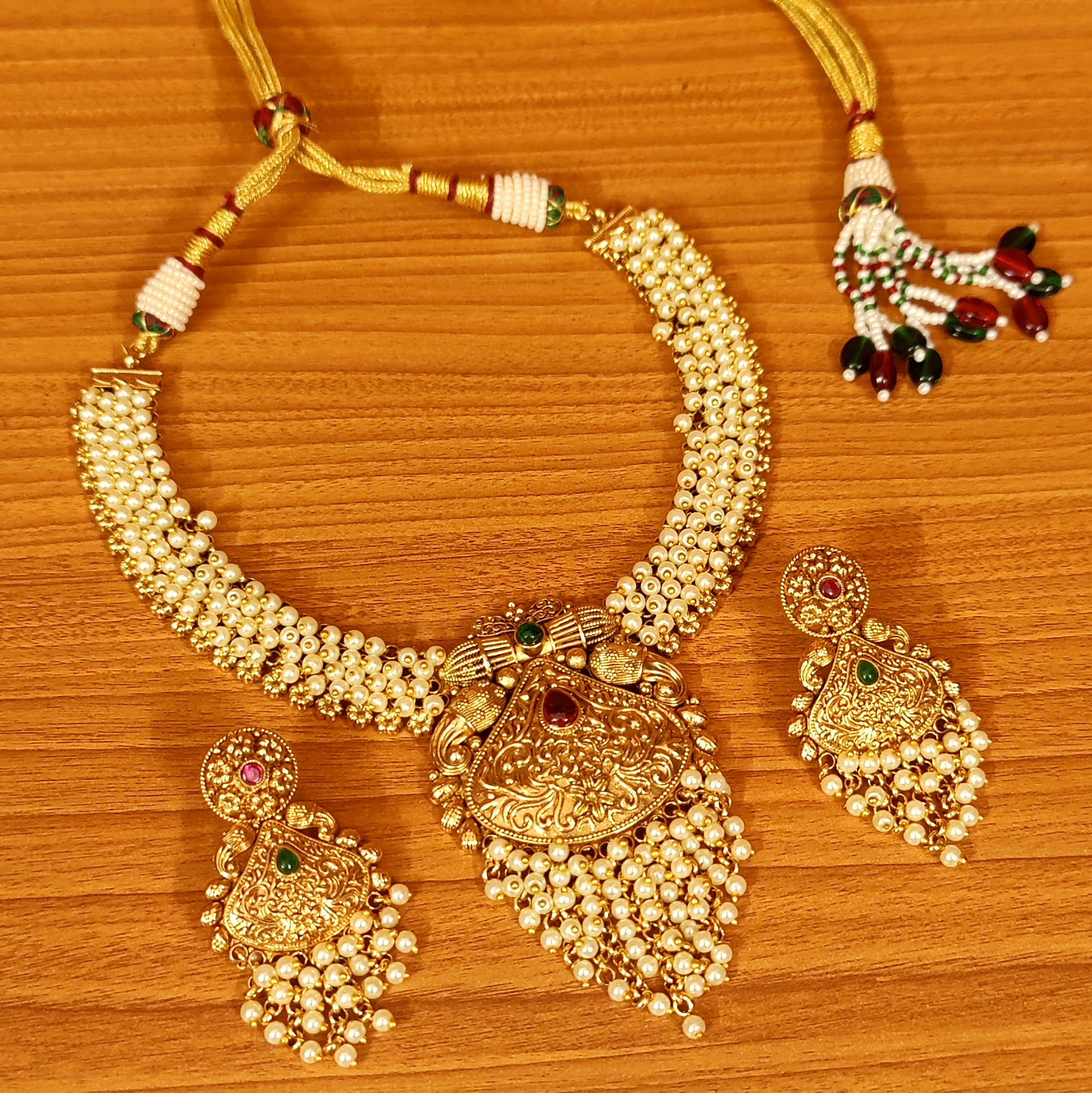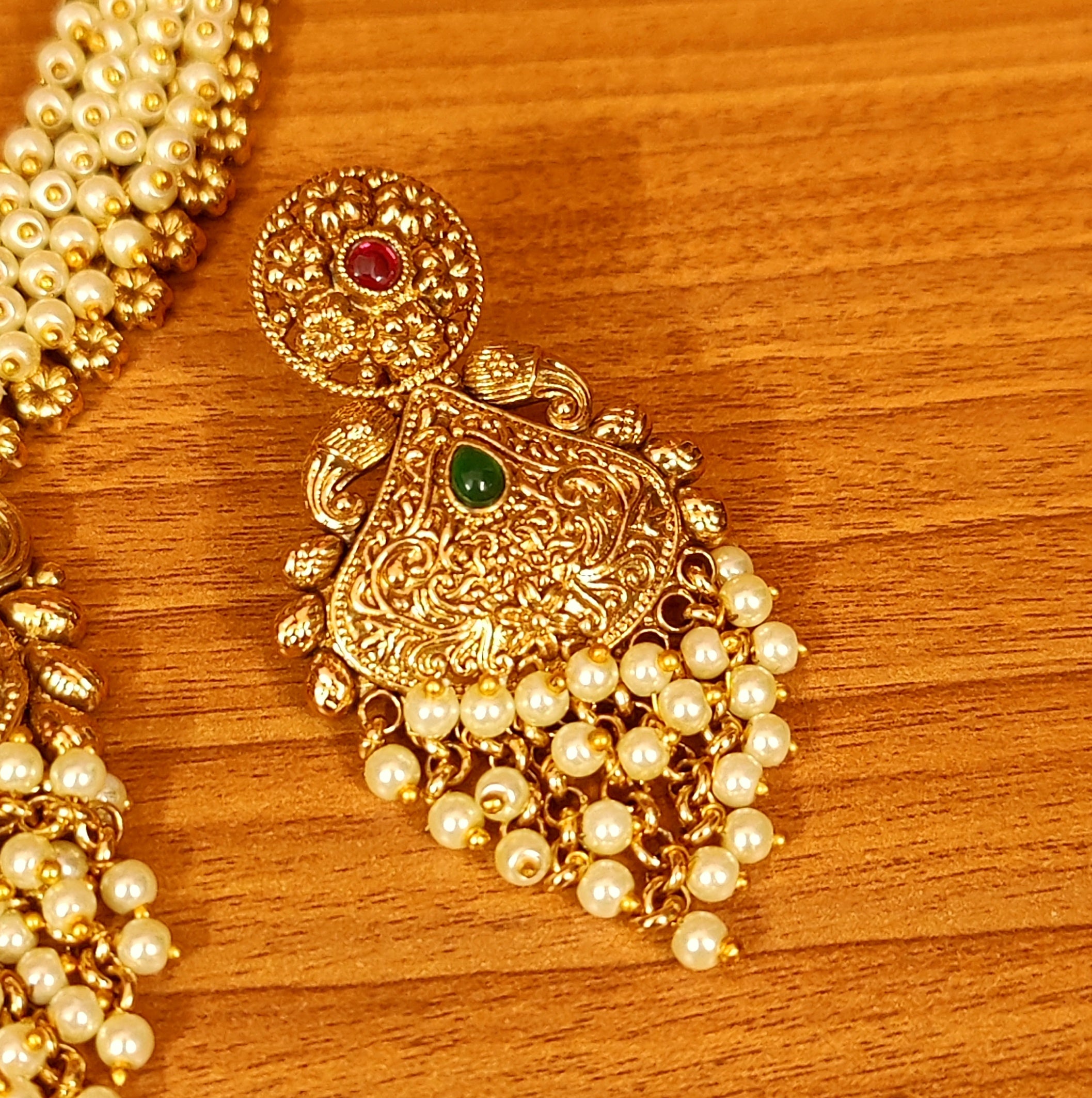 ANTIQUE GOLD PLATED PEARL BEADED NECKLACE SET