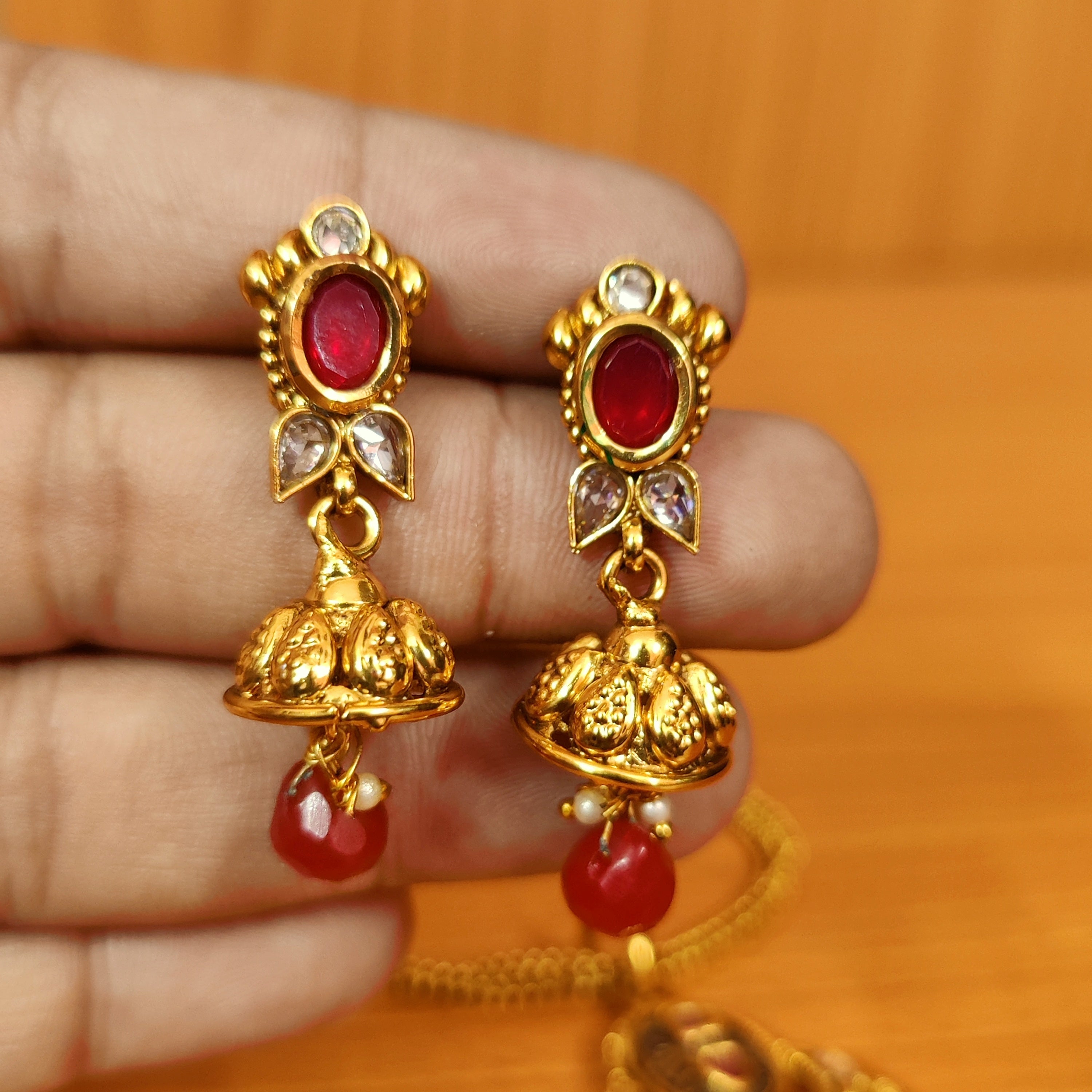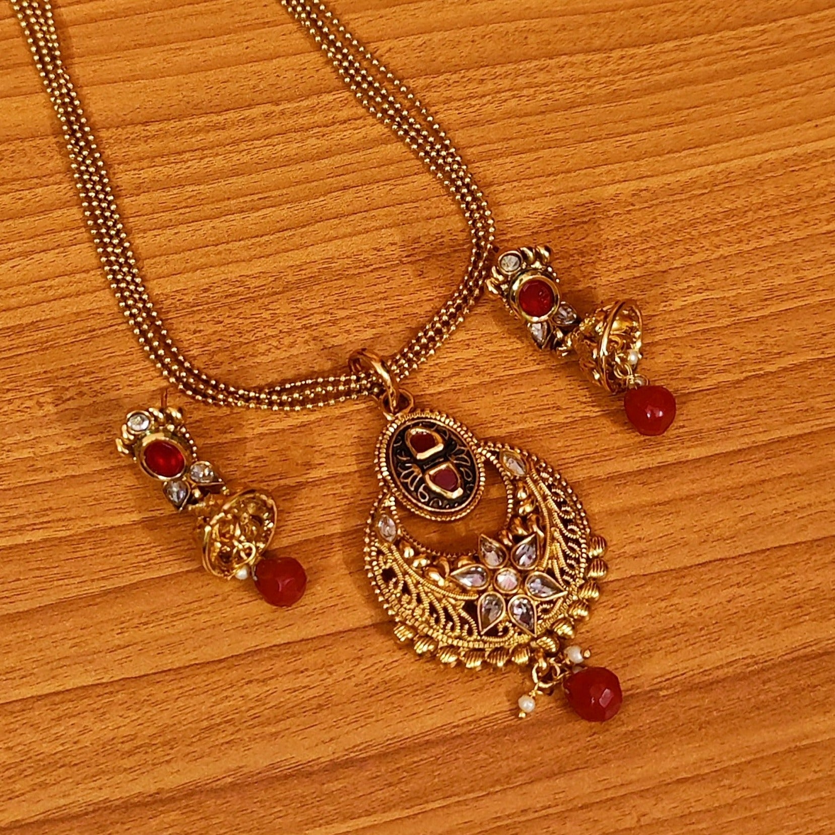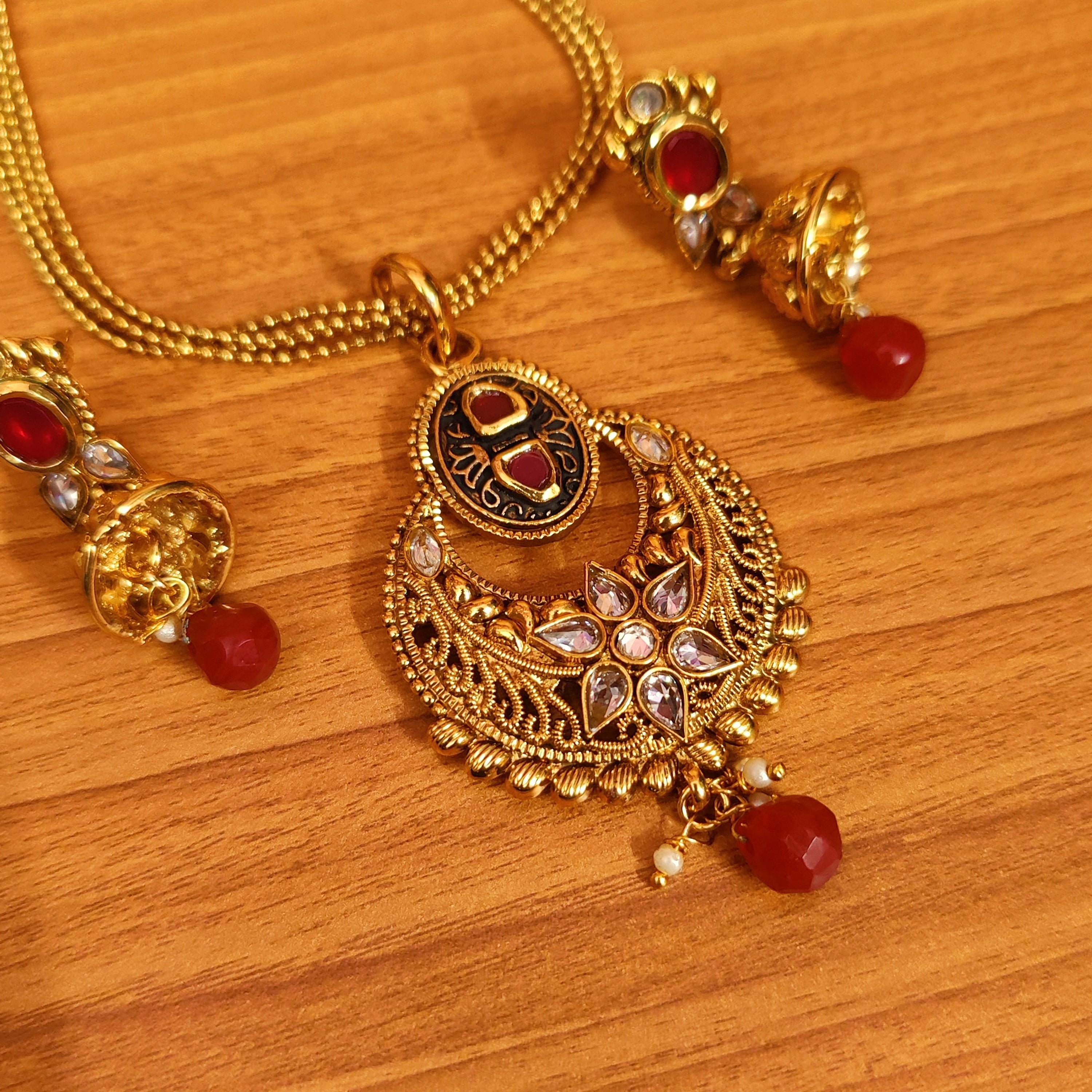 ANTIQUE GOLD PLATED RUBY LOOK PENDANT SET