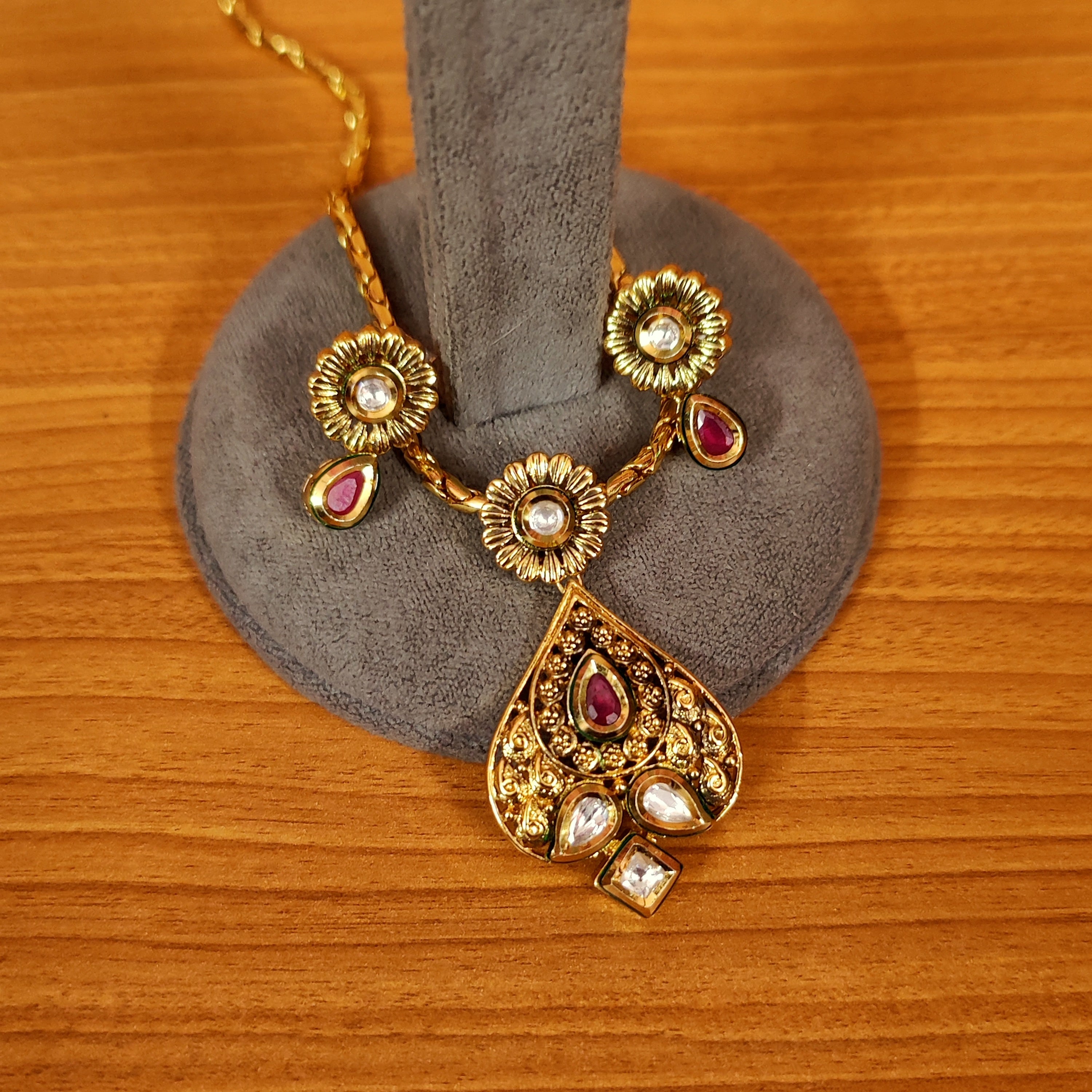 ANTIQUE GOLD LOOK RUBY STUDDED SIMPLE PENDANT SET