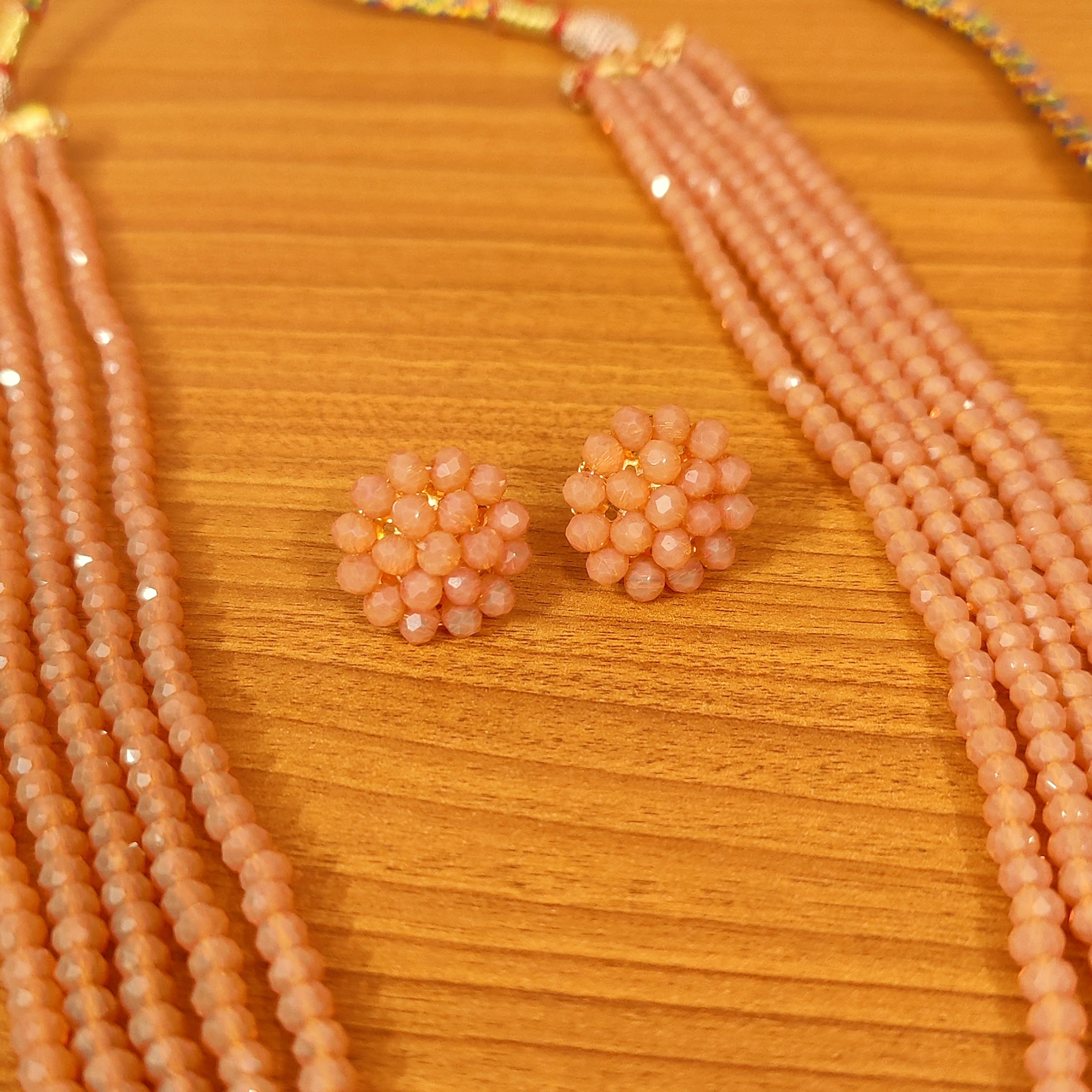 BEIGE COLOUR CRYSTAL 4MM 5 LAYERED NECKLACE SET