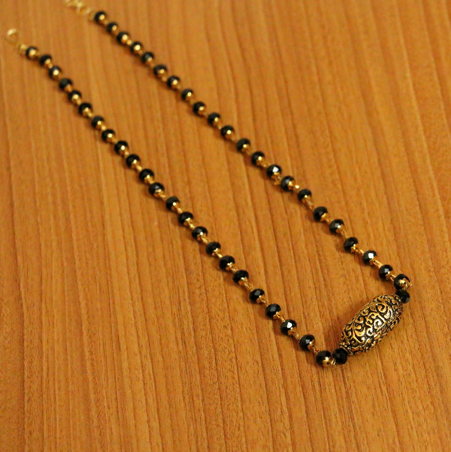 Black Crystal Antique Gold Bead Mangalsutra