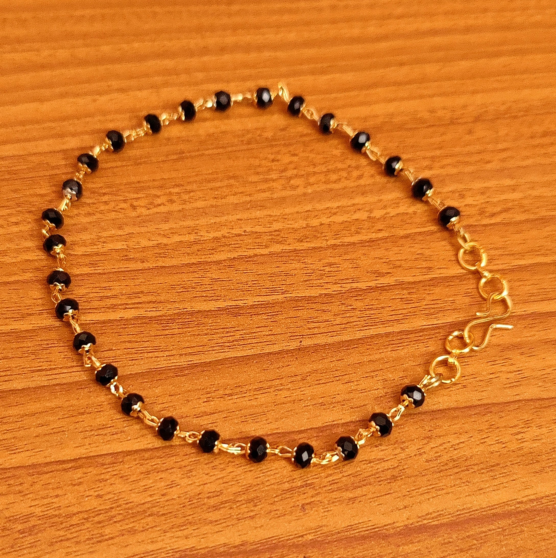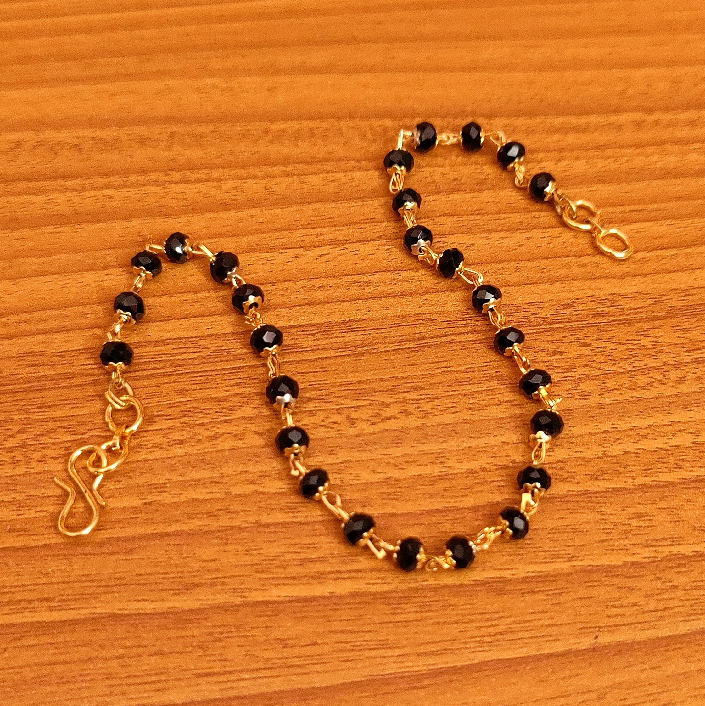 This beautiful bracelets is handcrafted in brass alloy with imitation black beads work of very fine quality , the bracelets is plated with 18kt nickle free gold plating which gives it a real look .