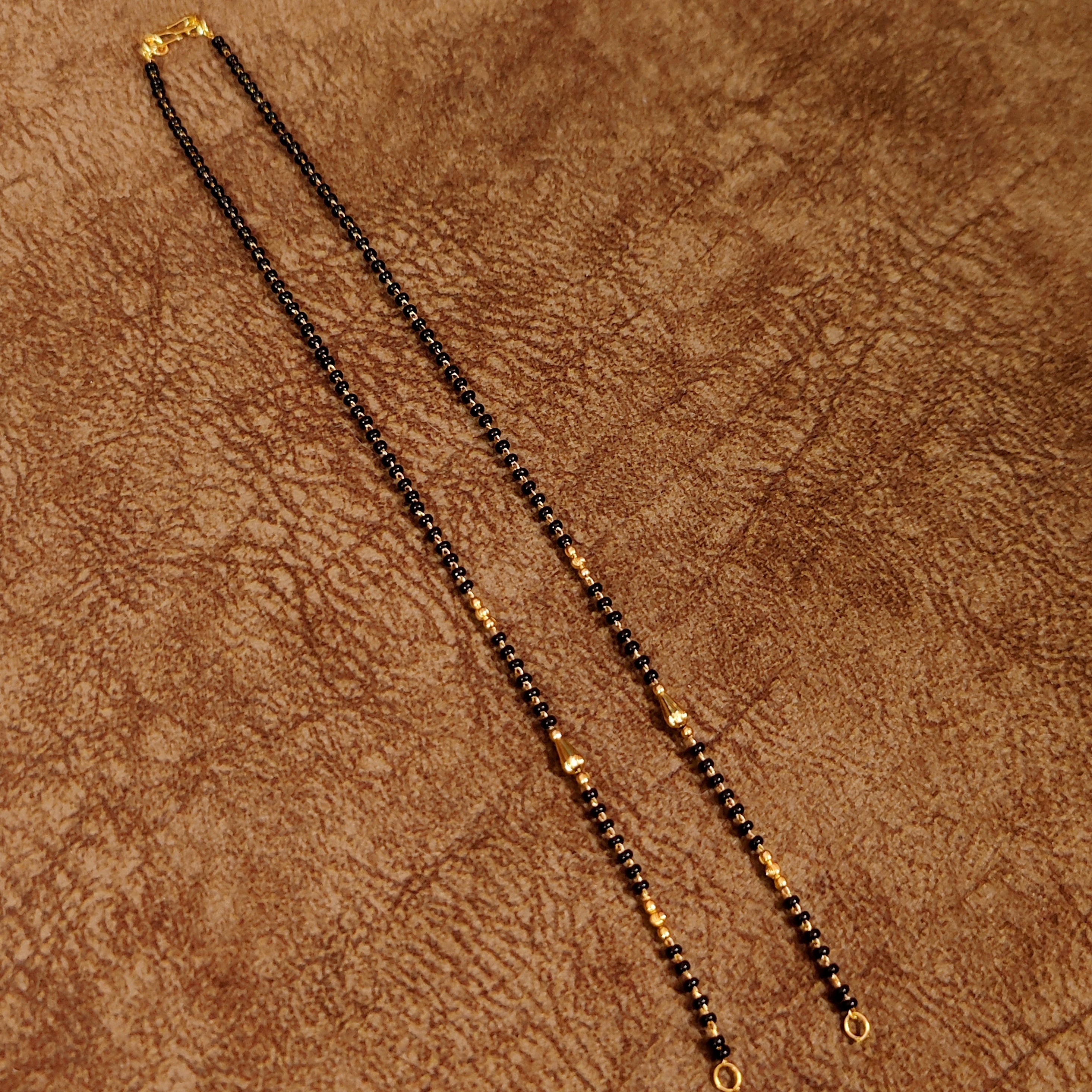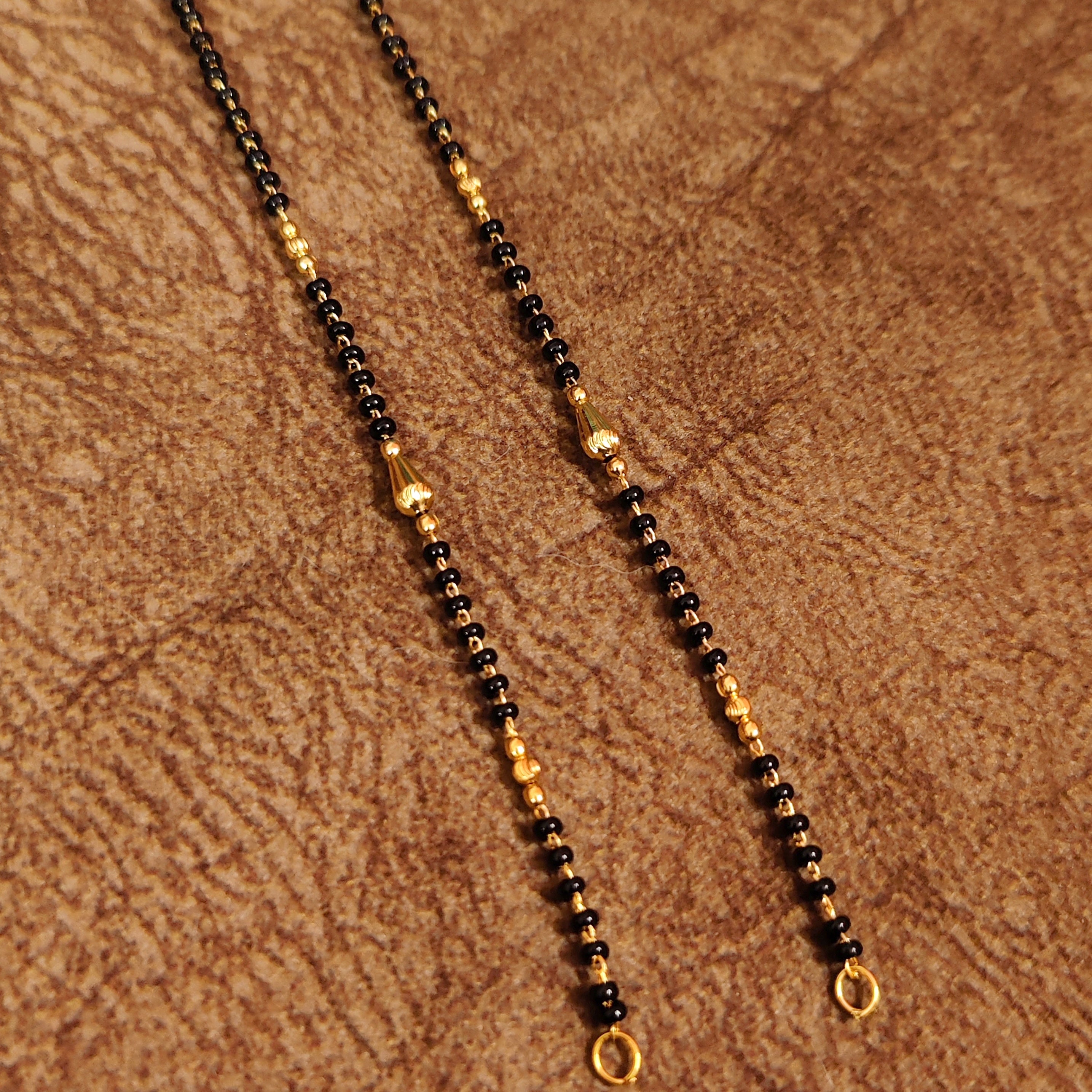 Embrace tradition with our Black and Gold Beads Mangalsutra Chain, a beautiful symbol of love and commitment. This elegantly designed chain features classic black and gold beads, creating a timeless and versatile look that complements both traditional and contemporary styles. Crafted with care, this mangalsutra is perfect for daily wear or special occasions, adding a touch of grace and elegance to any outfit.