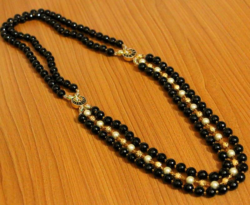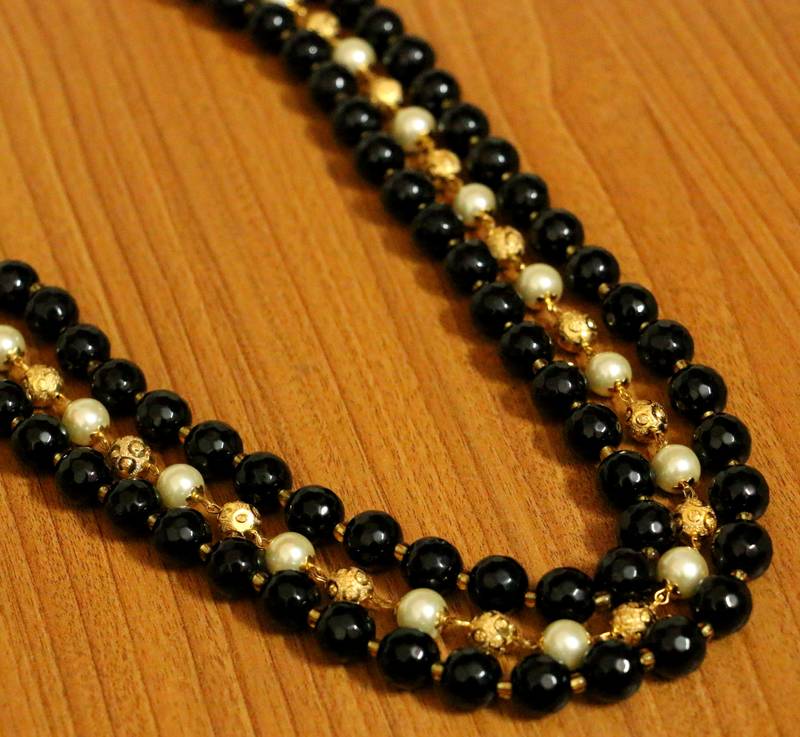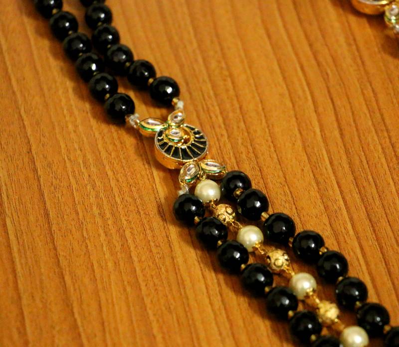 This beautiful necklace is handcrafted in brass alloy with imitation black onyx & kundan with meenakari work of very fine quality . This necklace is coated with 18 kt gold polish which give them a unique look . An absolutely stunning piece to own and are very light in weight.