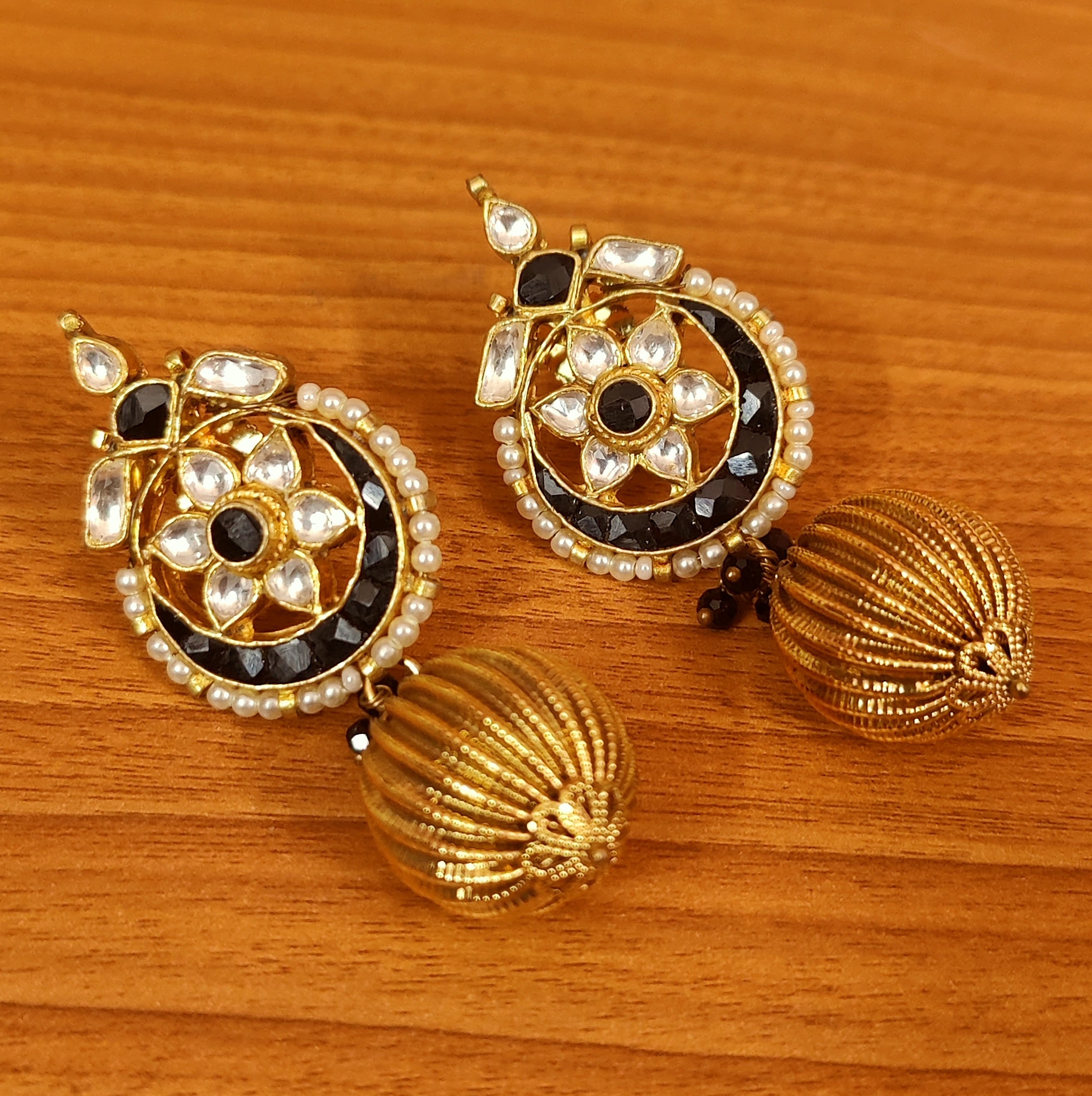 BLACK ONYX PACHHI KUNDAN GOLD BEAD DANGLERS