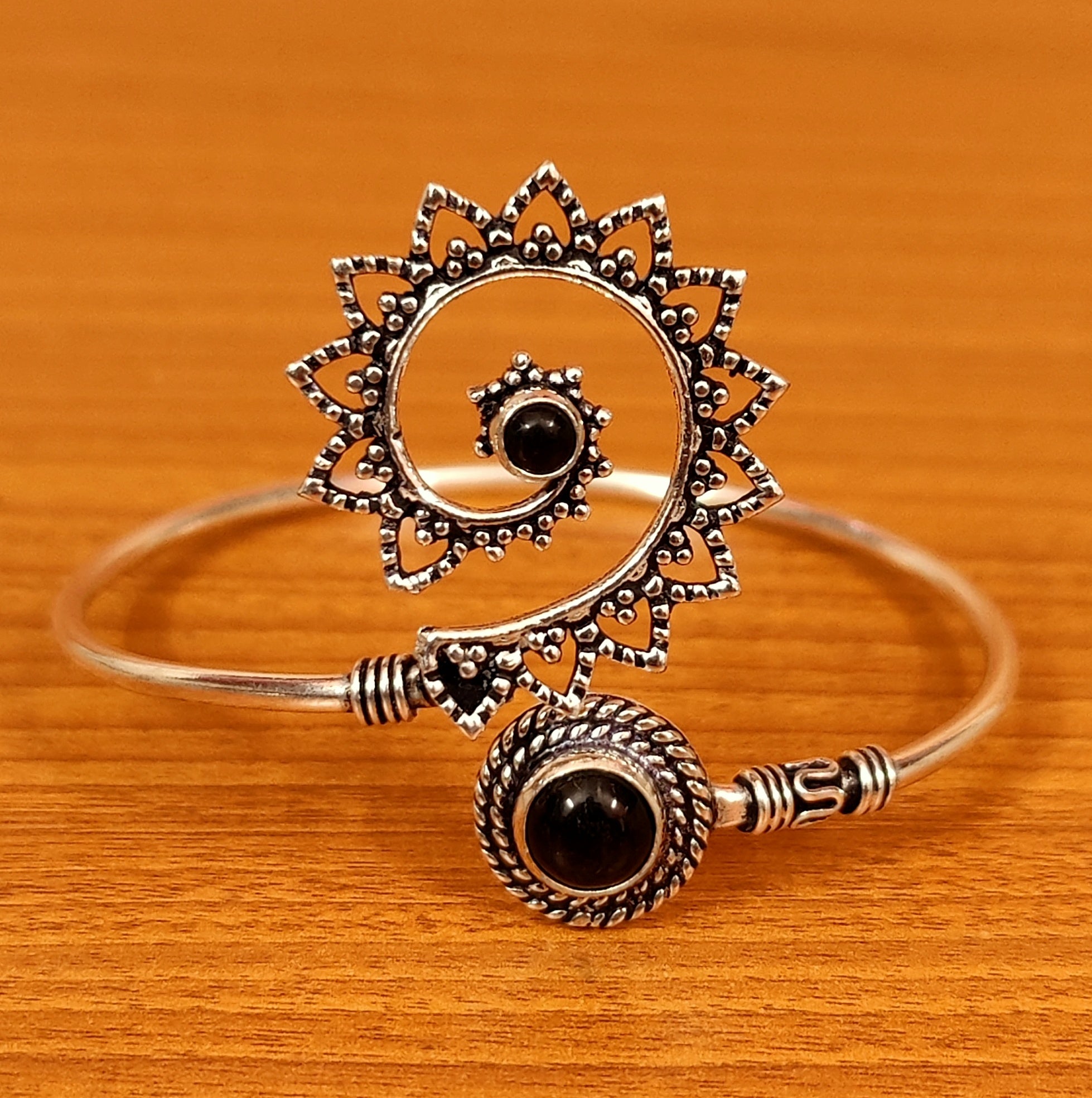 BLACK ONYX SILVER LOOKALIKE ADJUSTABLE BRACELET