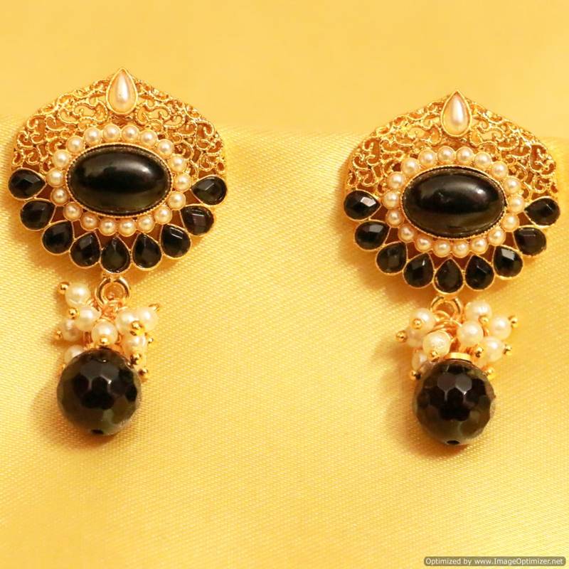 These beautiful Earrings are handcrafted in copper alloy with imitation onyx & pearls of very fine quality. These earrings are coated with 18 kt gold polish which give them a unique look . An absolutely stunning piece to own and are very light in weight.