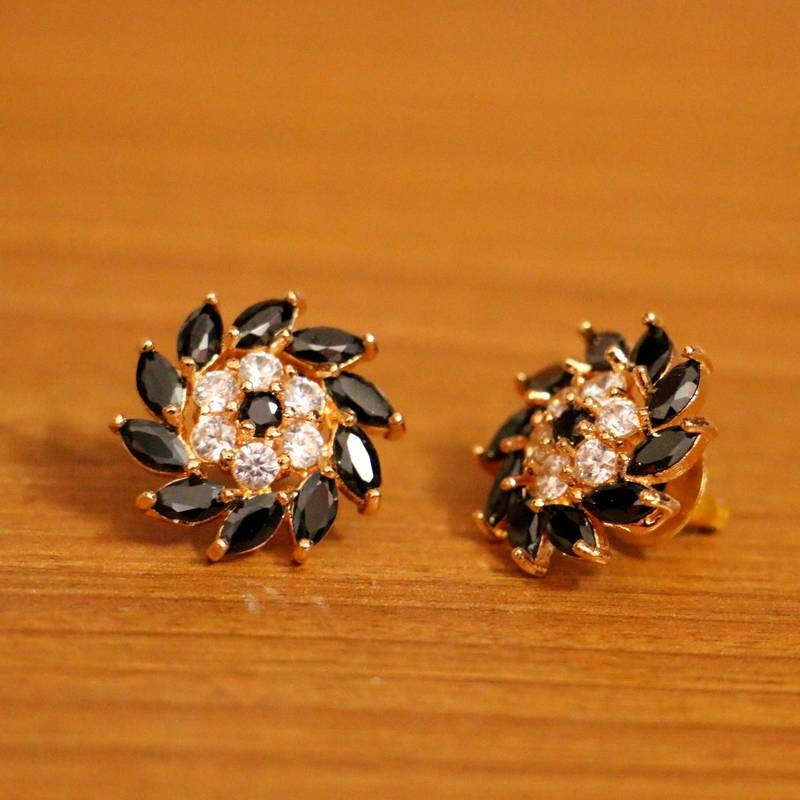 These Earrings Are Handcrafted In Silver Alloy With Imitation Balck Onyx Stone & American Diamond Of Very Fine Quality. These Artistic Yet Modern Earrings Are Plated With High Quality Gold Rhodium. The Earrings Are Very Light In Weight.