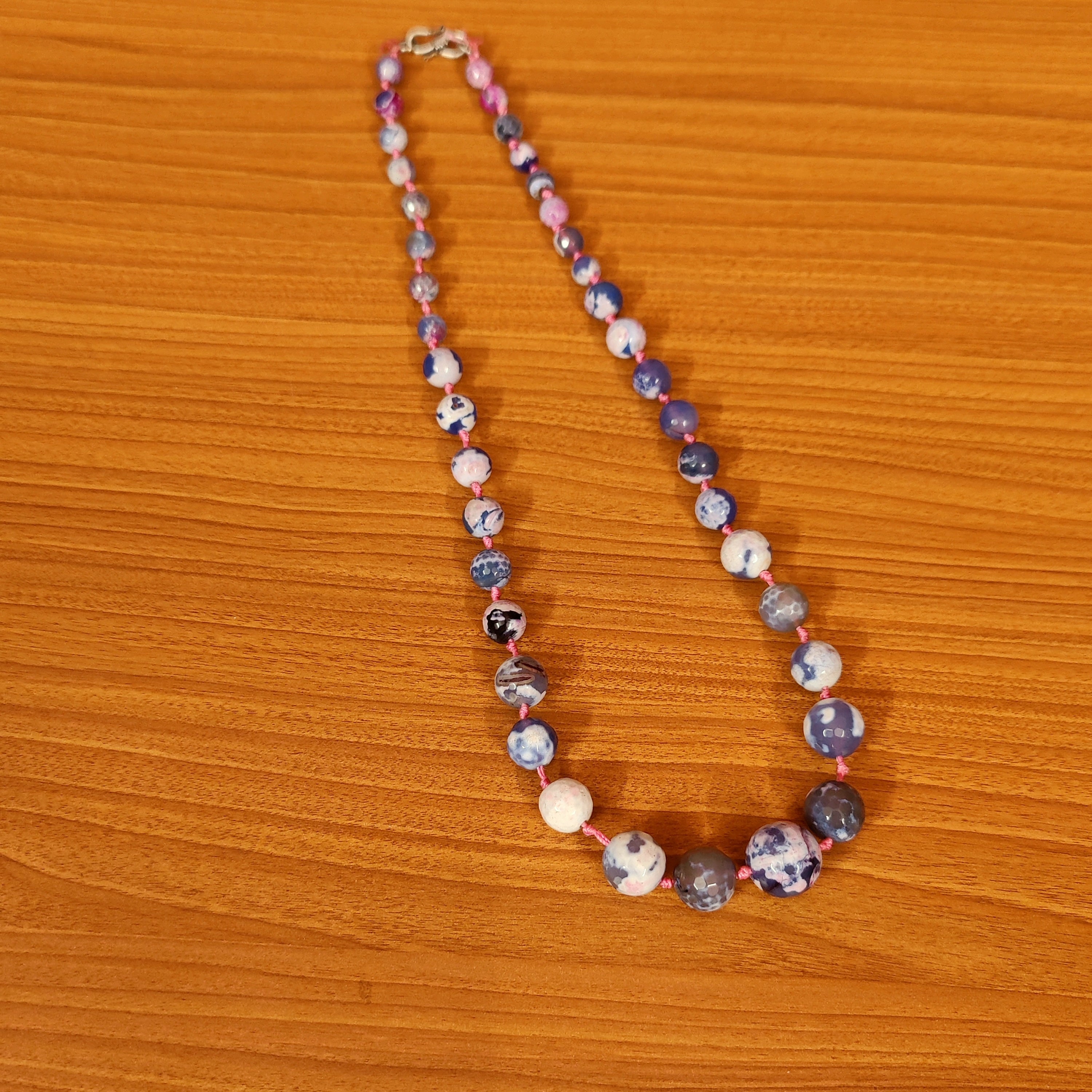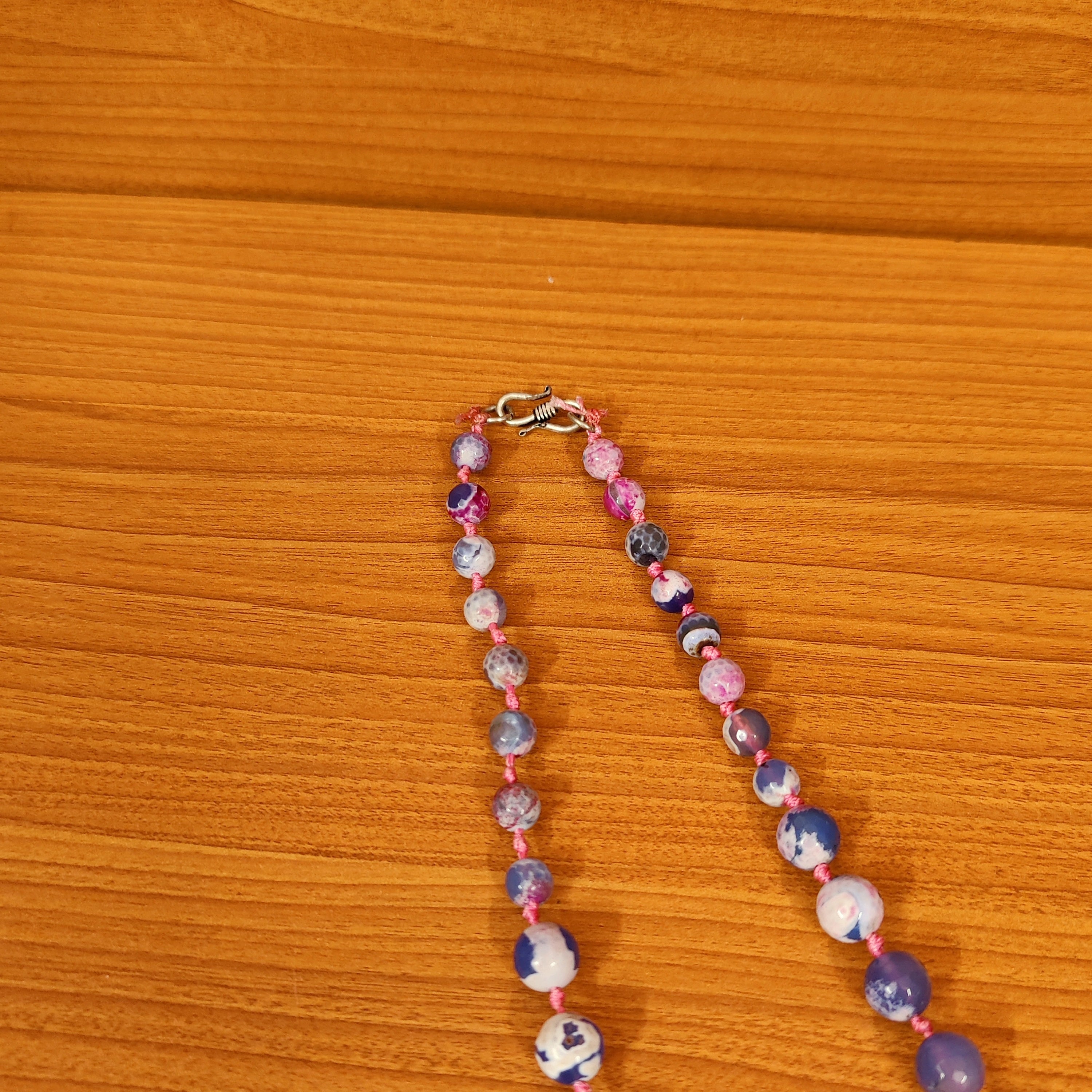 BLUE AGATE SEMI PRECIOUS HAND KNOTTED NECKLACE