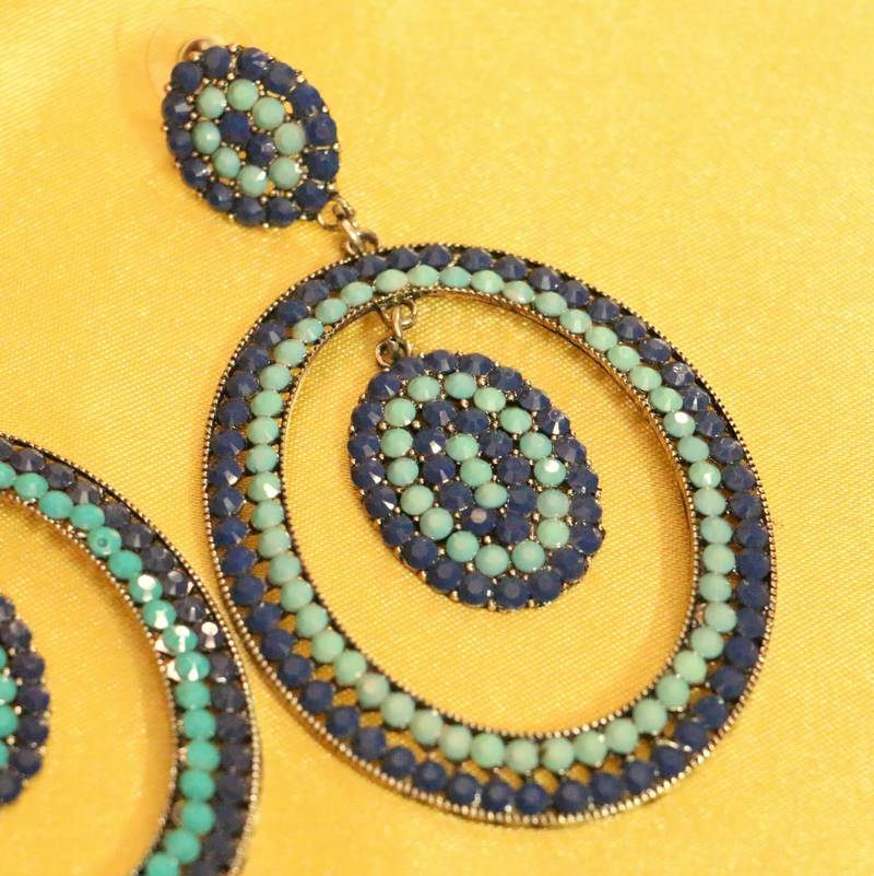 Blue Colour Imitation Stone Studded Fashion Earrings