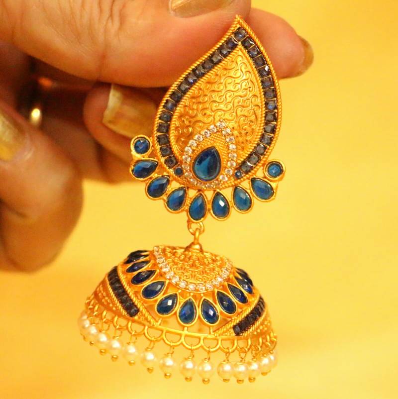 Blue Gold Plated Paisley Look Matt Finish Jhumka
