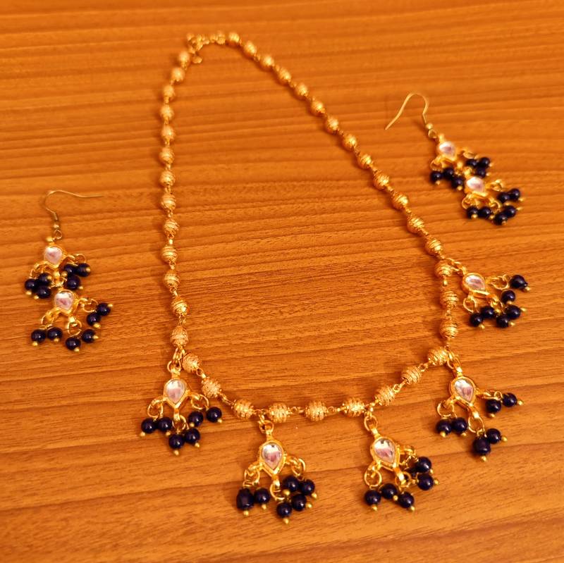 BLUE GOLD LOOK KUNDAN NECKLACE SET