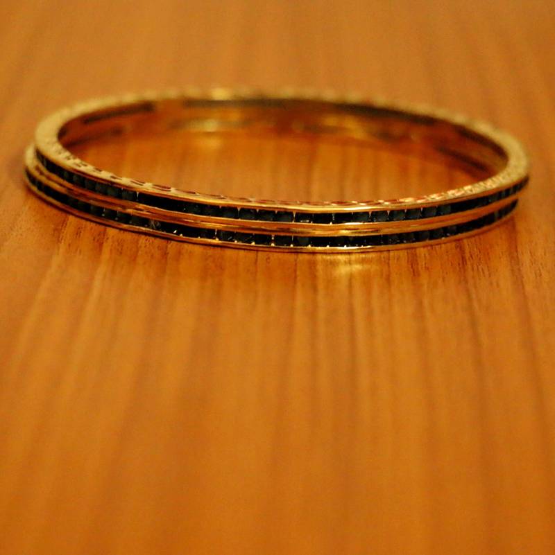 These bangles are handcrafted in brass alloy with imitation blue zircon work of very fine quality. These artistic yet modern bangles are plated with fine nickle free gold rhodium to avoid any allergies to the skin.