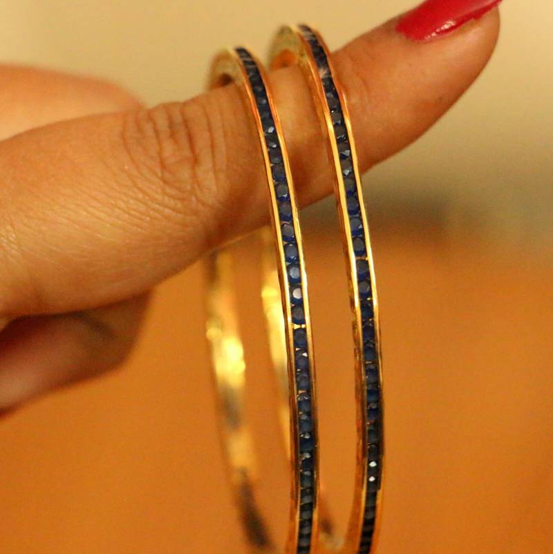 BLUE SAPPHIRE GOLD PLATED 2 BANGLE SET