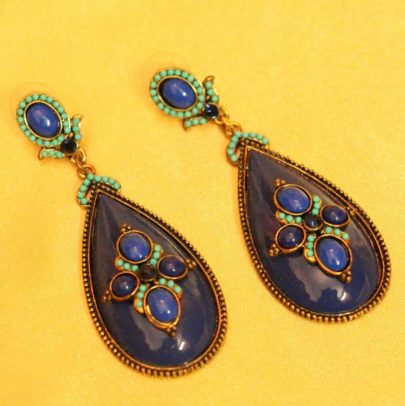 These beautiful earrings are handcrafted in brass alloy with imitation crystal work of very fine quality. These earrings are coated with antique gold polish which give them a unique look . An absolutely stunning piece to own and are very light in weight.