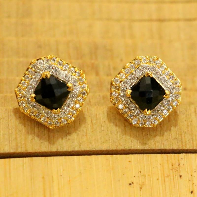 These beautiful Earrings are handcrafted in silver alloy with imitation zircon & semi precious onyx,american diamonds of very fine quality. These earrings are coated with 18 kt white gold polish which give them a unique look . An absolutely stunning piece to own and are very light in weight.