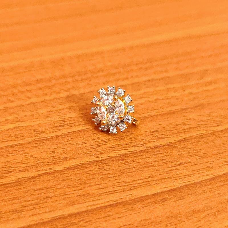 This Beautiful Nose Ring Is Handcrafted In Brass Alloy With Imitation Cz Stone Of Very Fine Quality . The Nose Ring Is Very Intricate And Very Light In Weight And Is Plated In 18kt Gold Plating As Done On The Real Gold Jewellery.