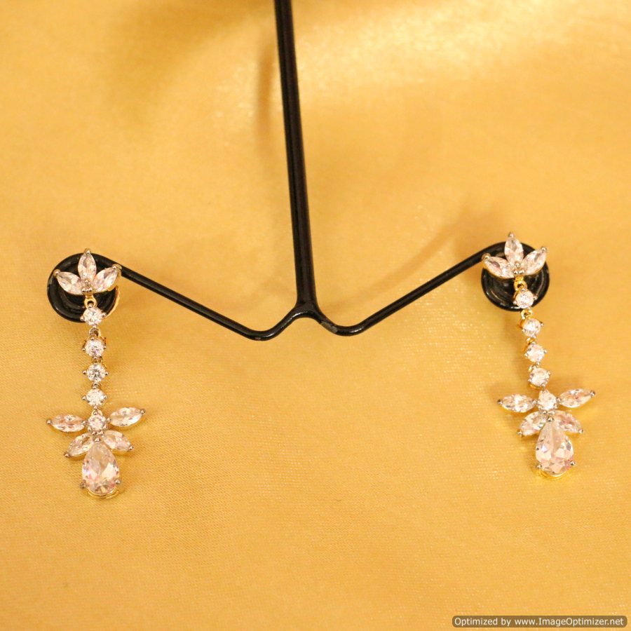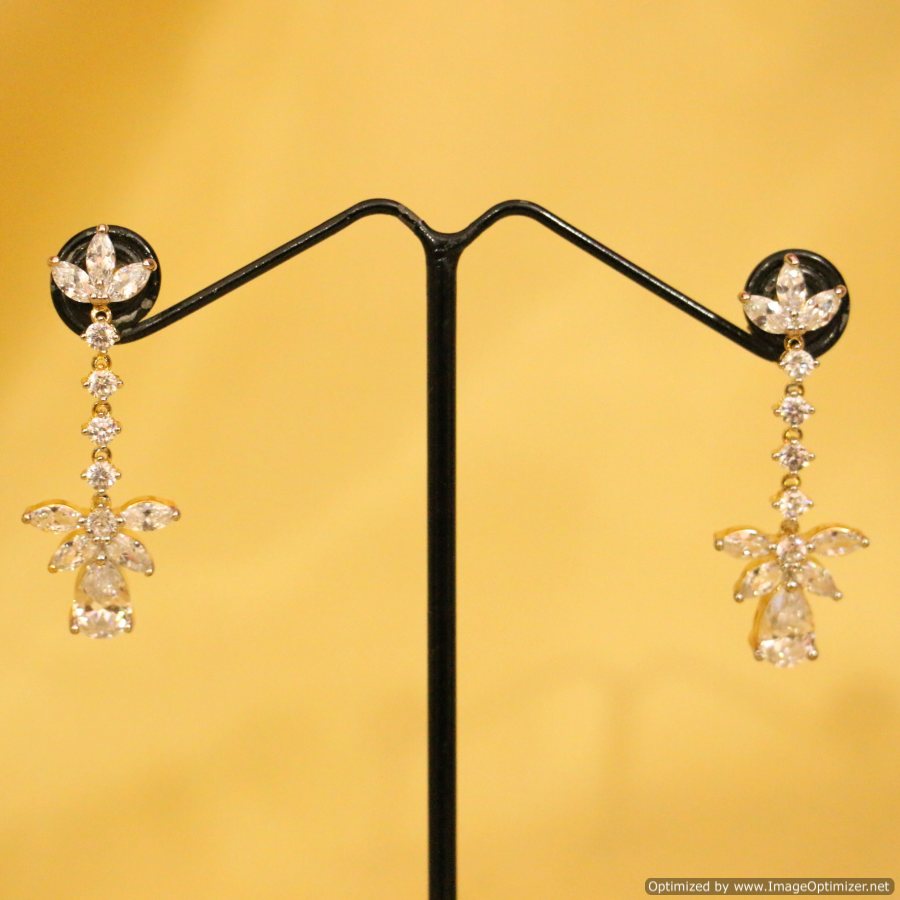 These beautiful Earrings are handcrafted in silver alloy with fine american diamond of very fine quality . These earrings are coated with 18 kt gold polish which give them a unique look . An absolutely stunning piece to own and are very light in weight.