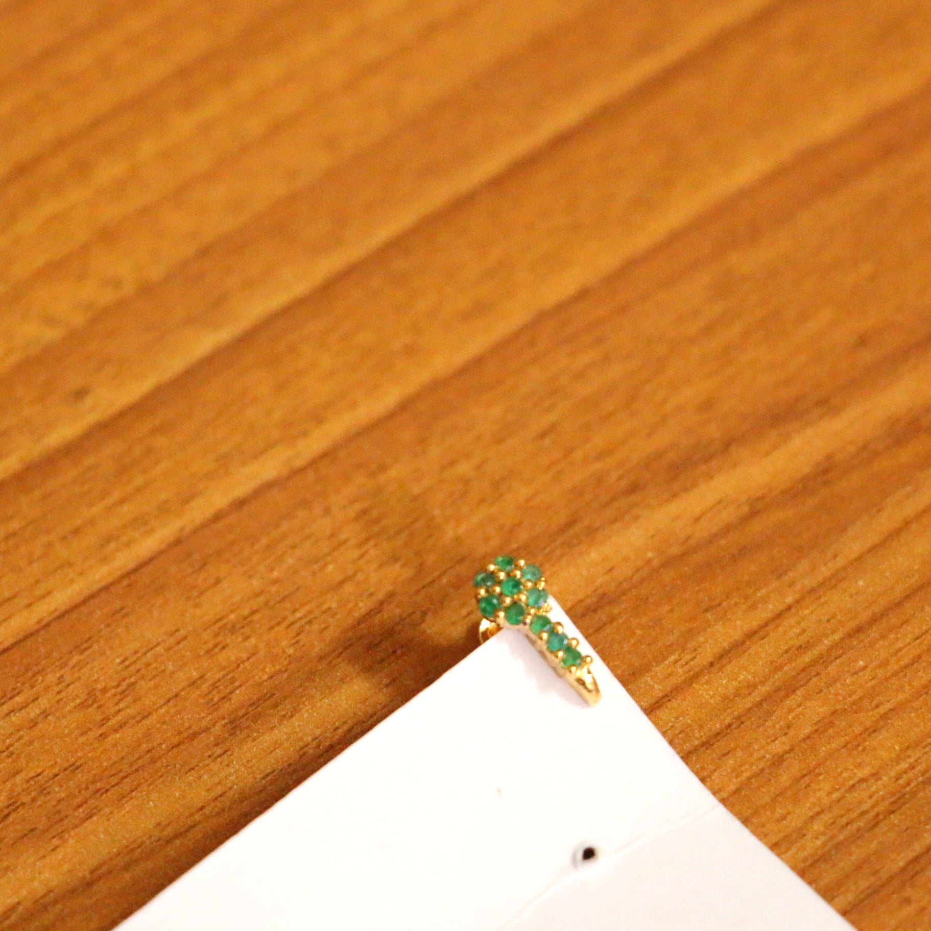 This diamond look piercing nose ring is handcrafted in silver alloy with imitation emerald colour cz stones of very fine quality , the nose ring is very light in weight and plated with 18kt gold rhodium to give it a real gold look.
