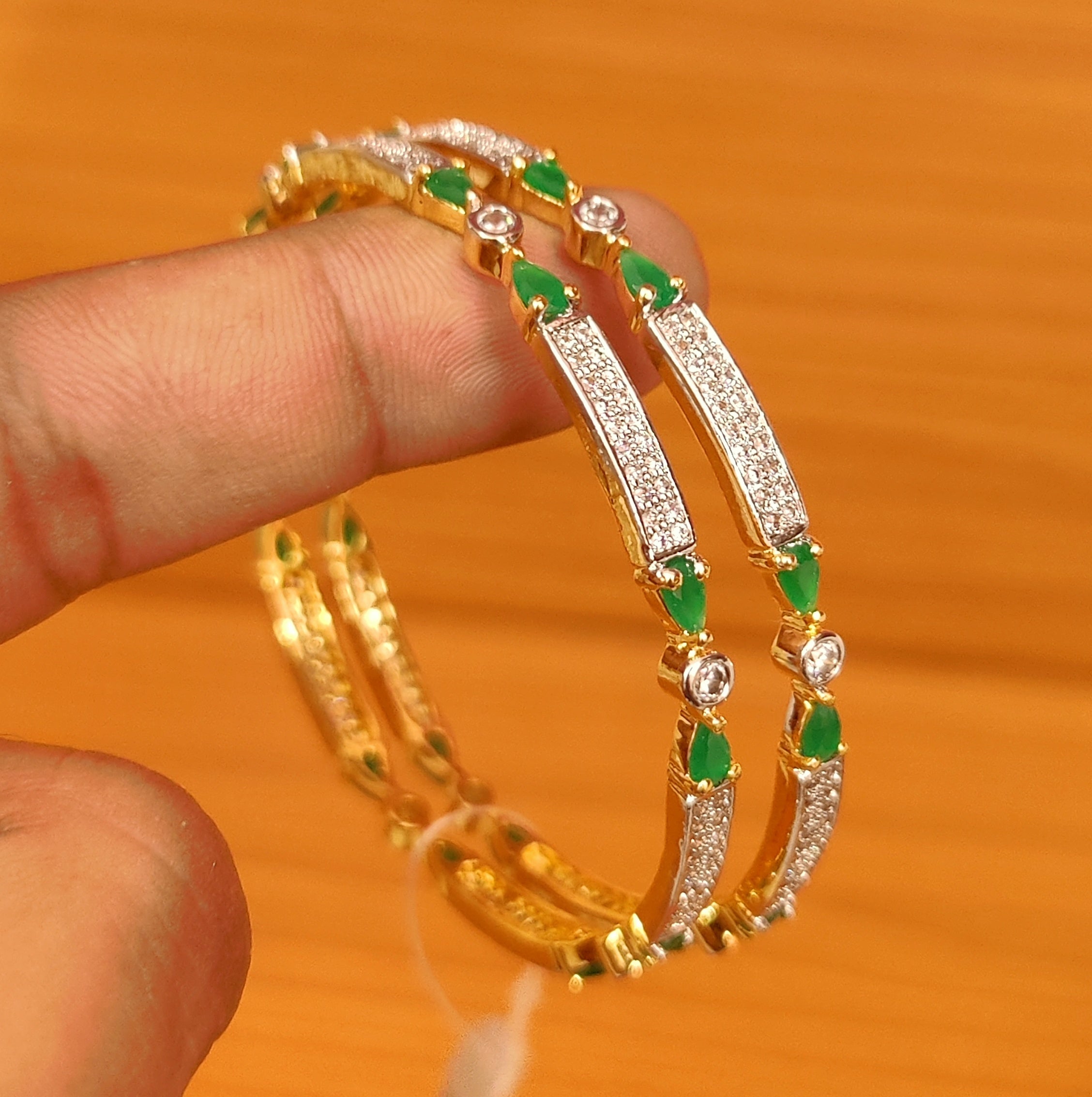 EMERALD LOOK CZ STUDDED DIAMOND LOOK BANGLES