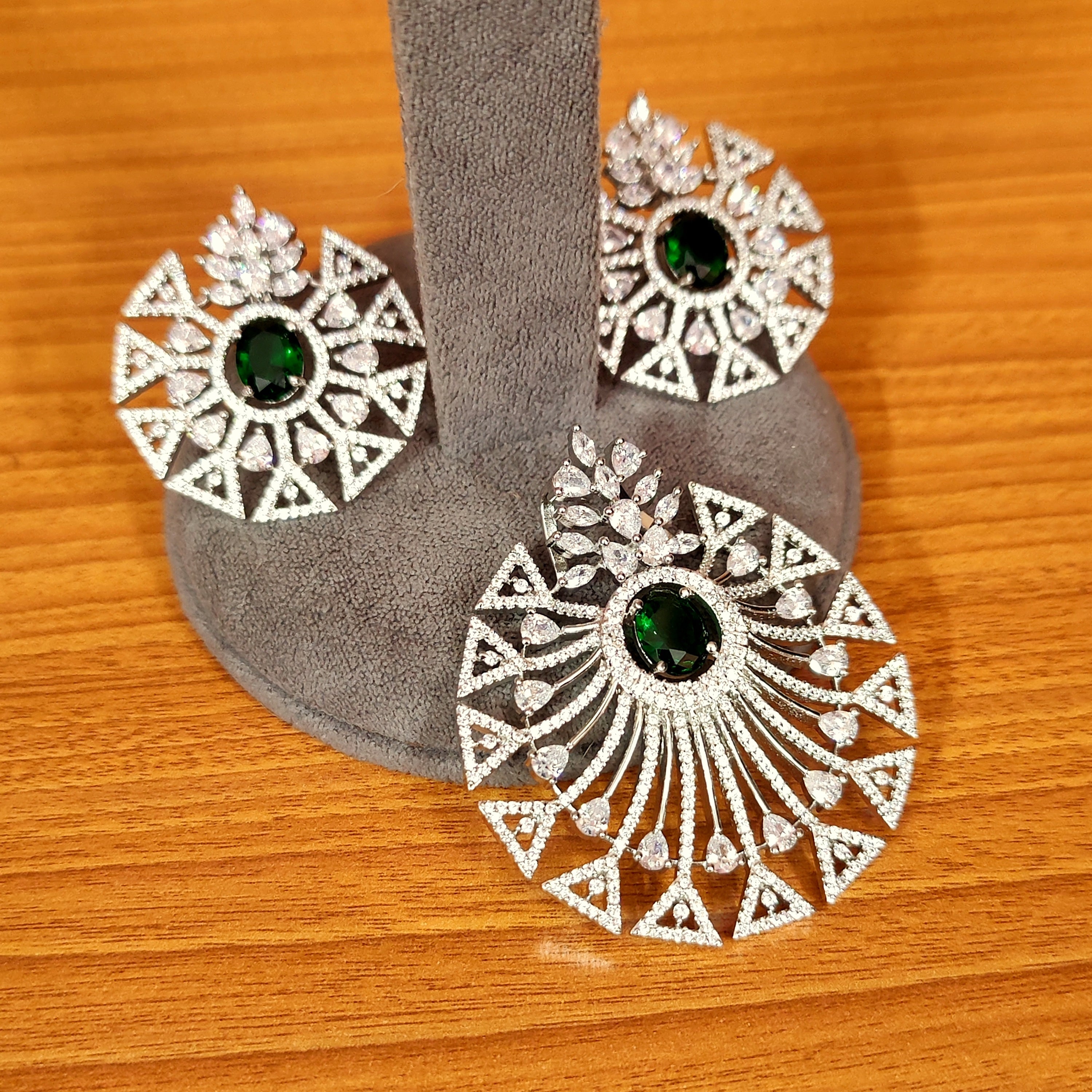 EMERALD LOOK CZ STUDDED SILVER PLATED PENDANT SET