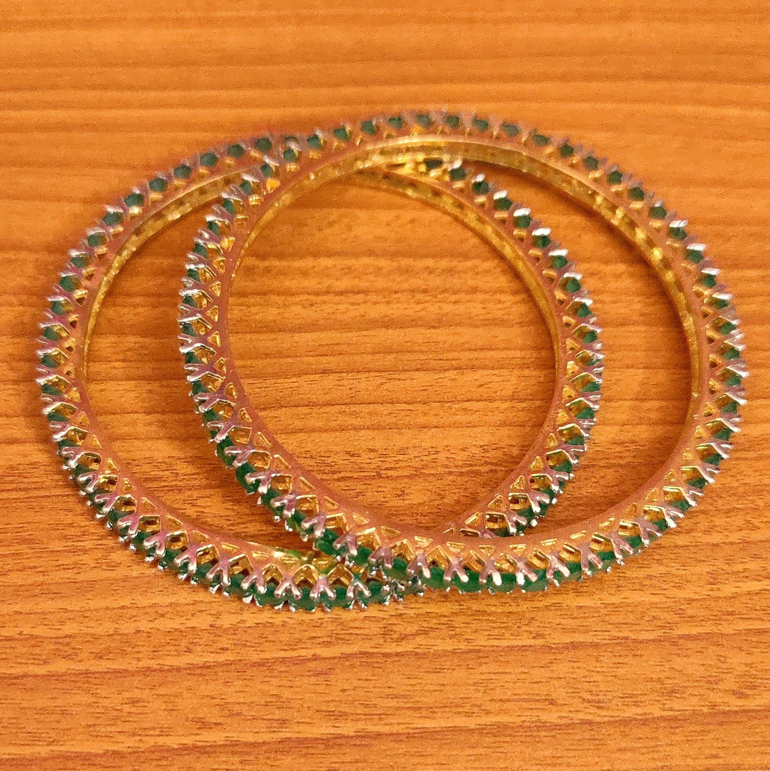 EMERALD LOOK GOLD PLATED SINGLE LINE BANGLES