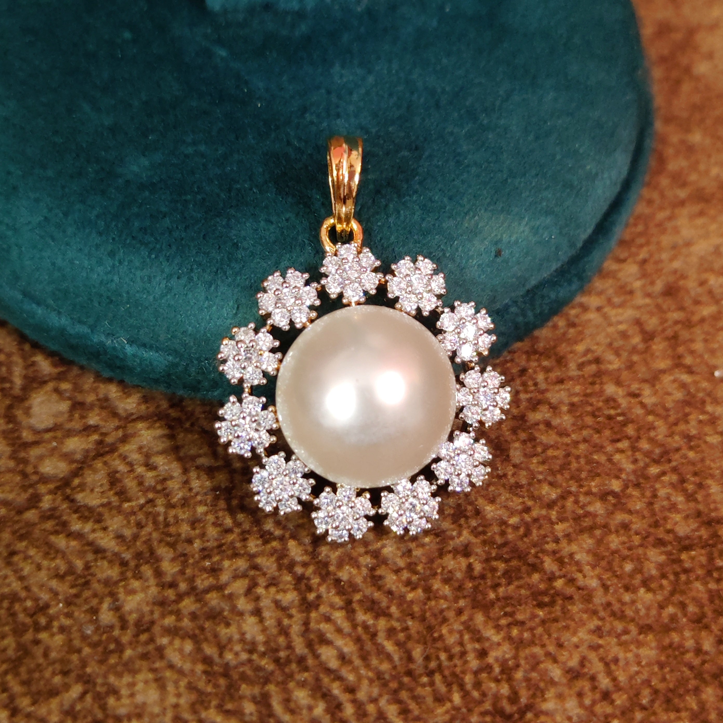 FLOWER AD STUDDED GOLD PLATED SHELL PEARL PENDANT SET