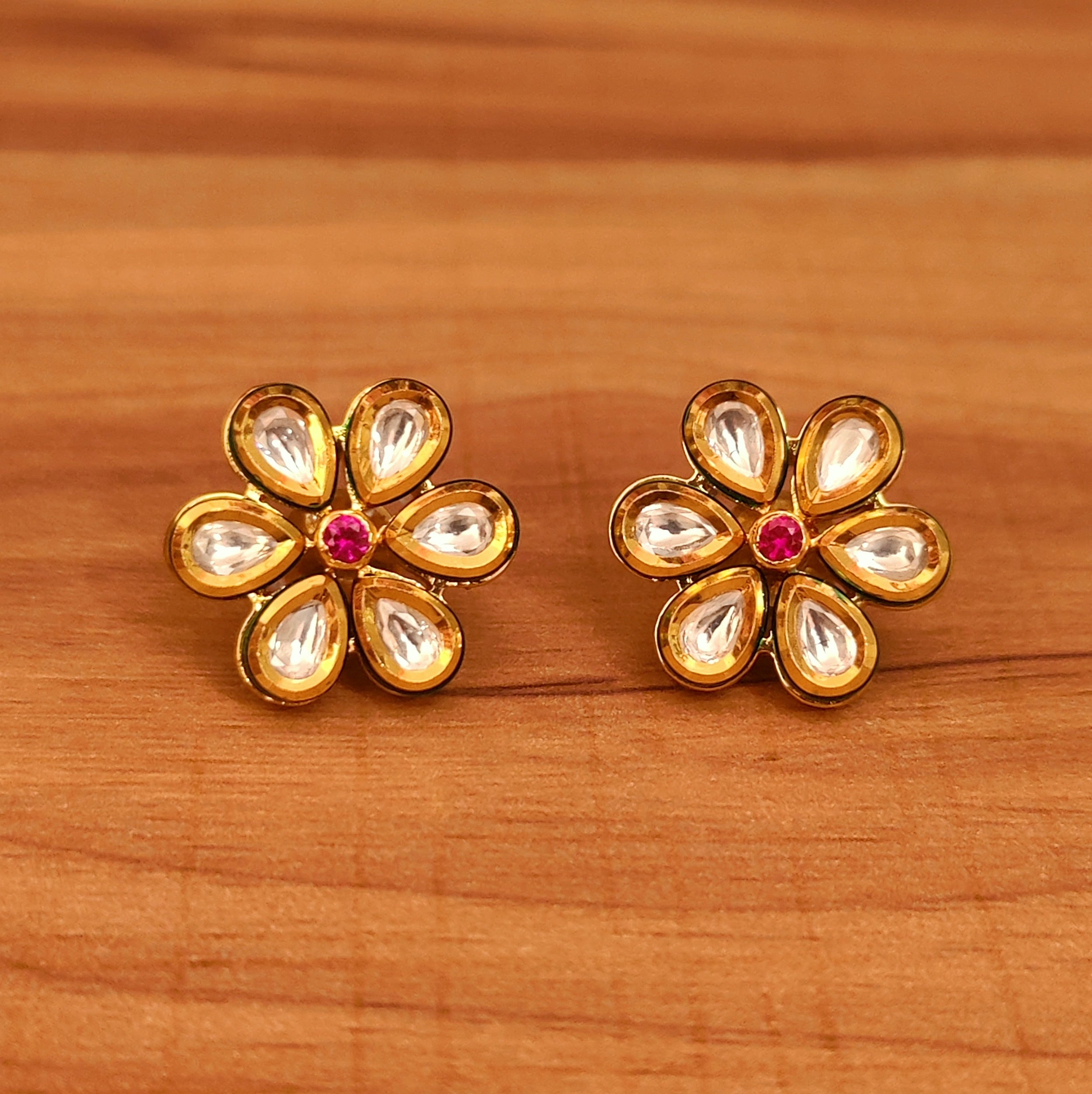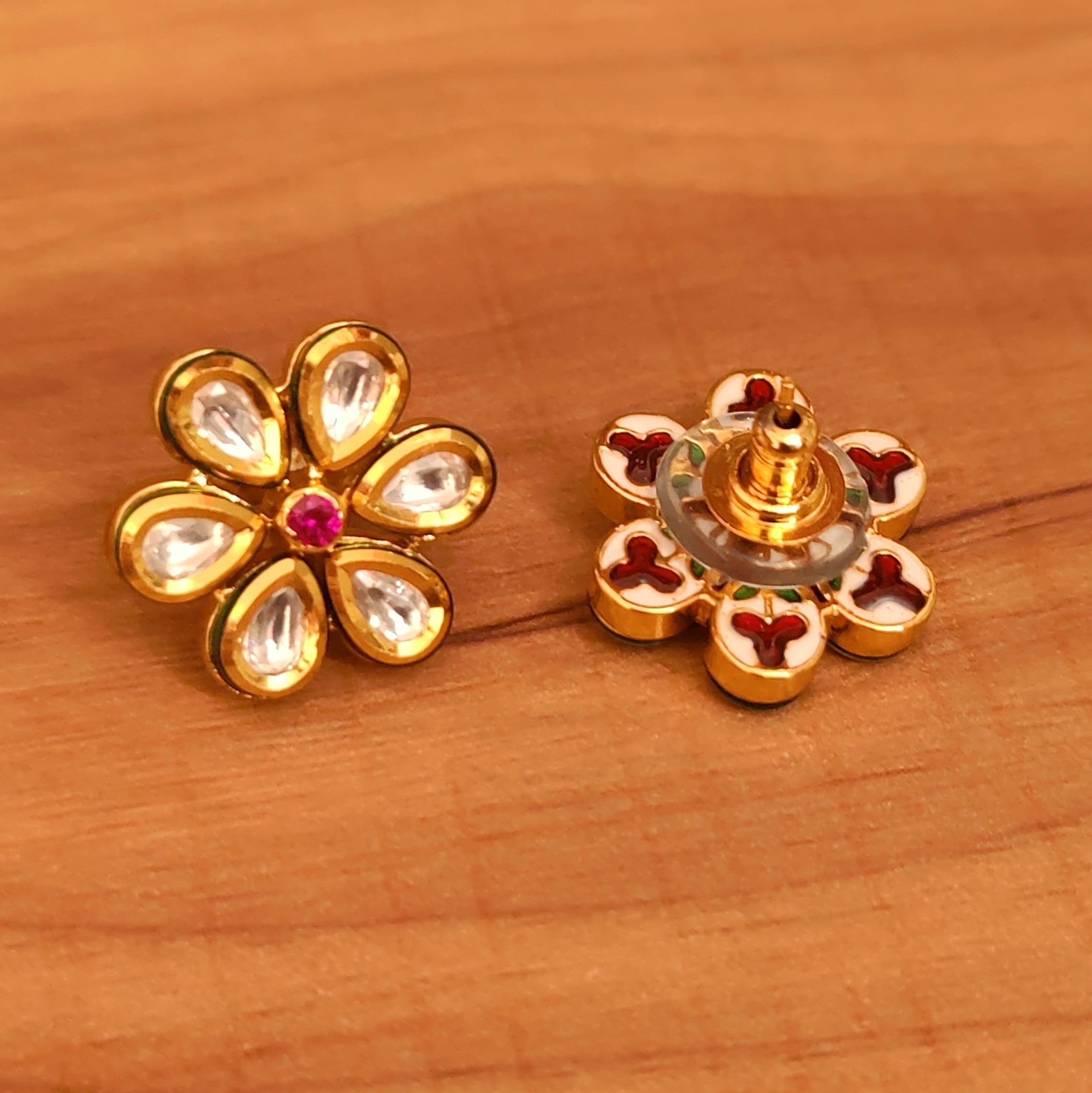 FLOWER KUNDAN MEENAKARI RUBY STUDS