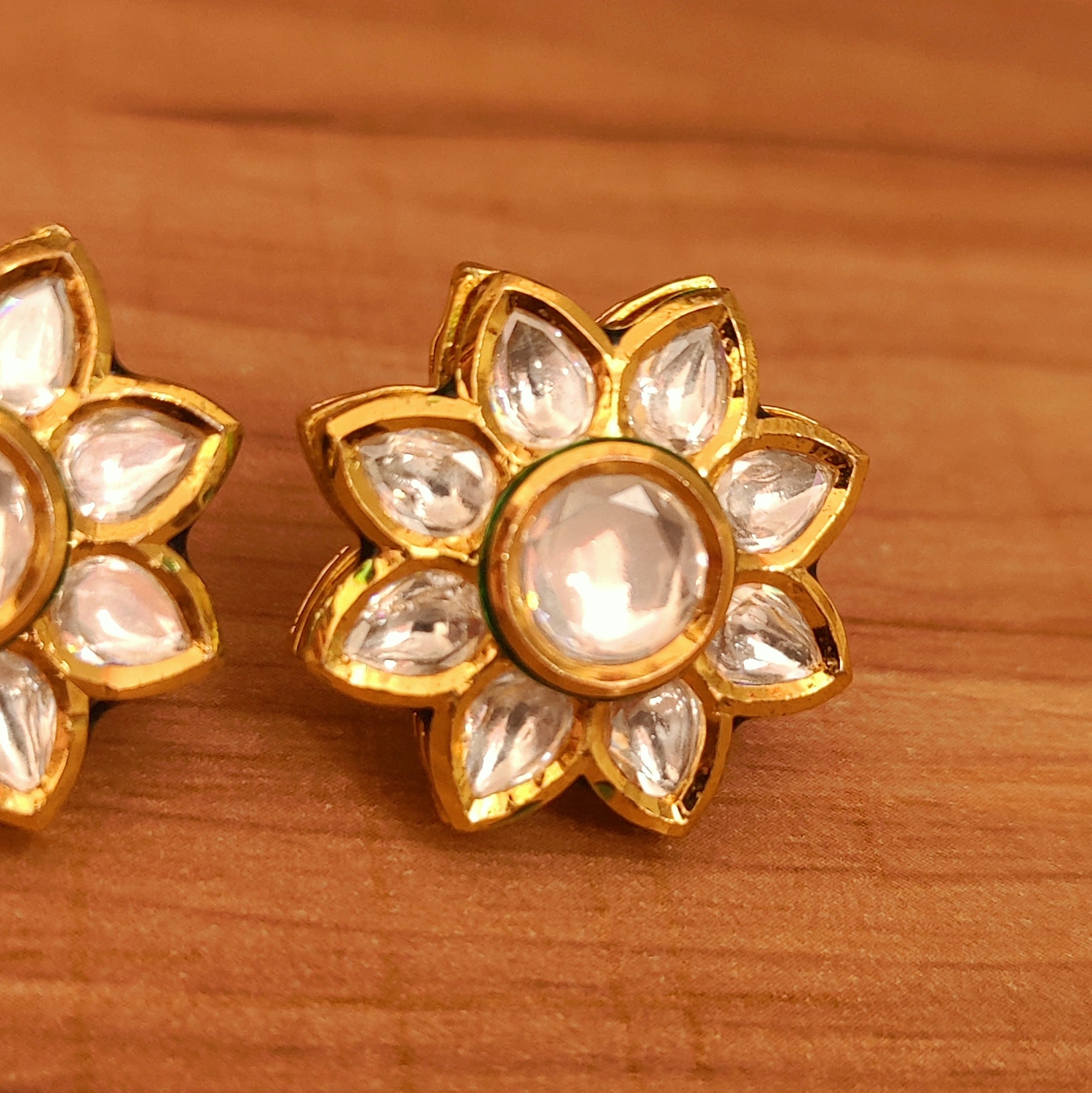 FLOWER PATTERN KUNDAN MEENAKARI BIG STUDS