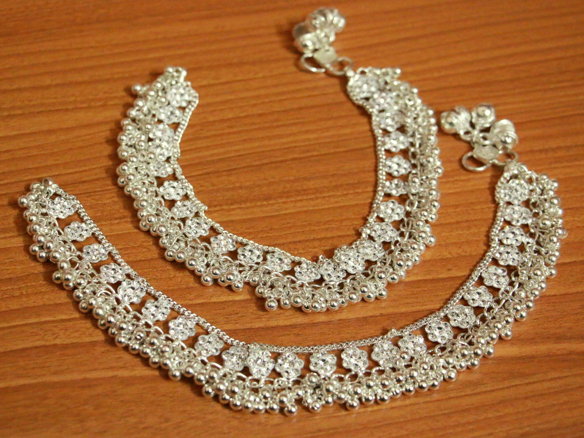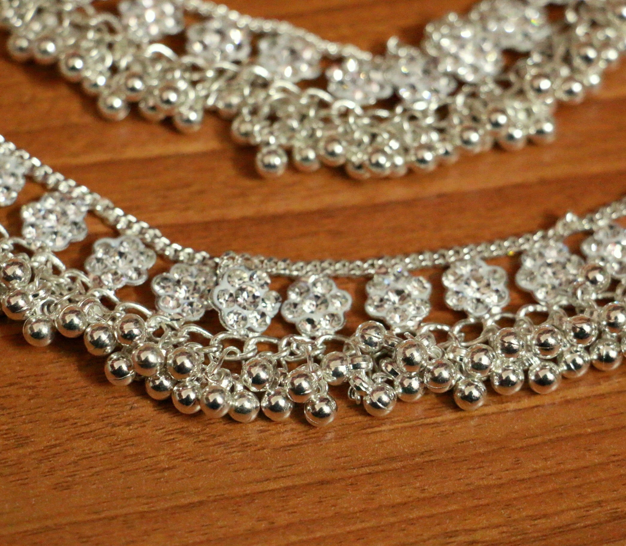 This beautiful anklets is handcrafted in silver alloy with imitation zircon work of very fine quality . The anklet is very intricate and very light in weight and is plated in silver plating as done on the real silver jewellery.
