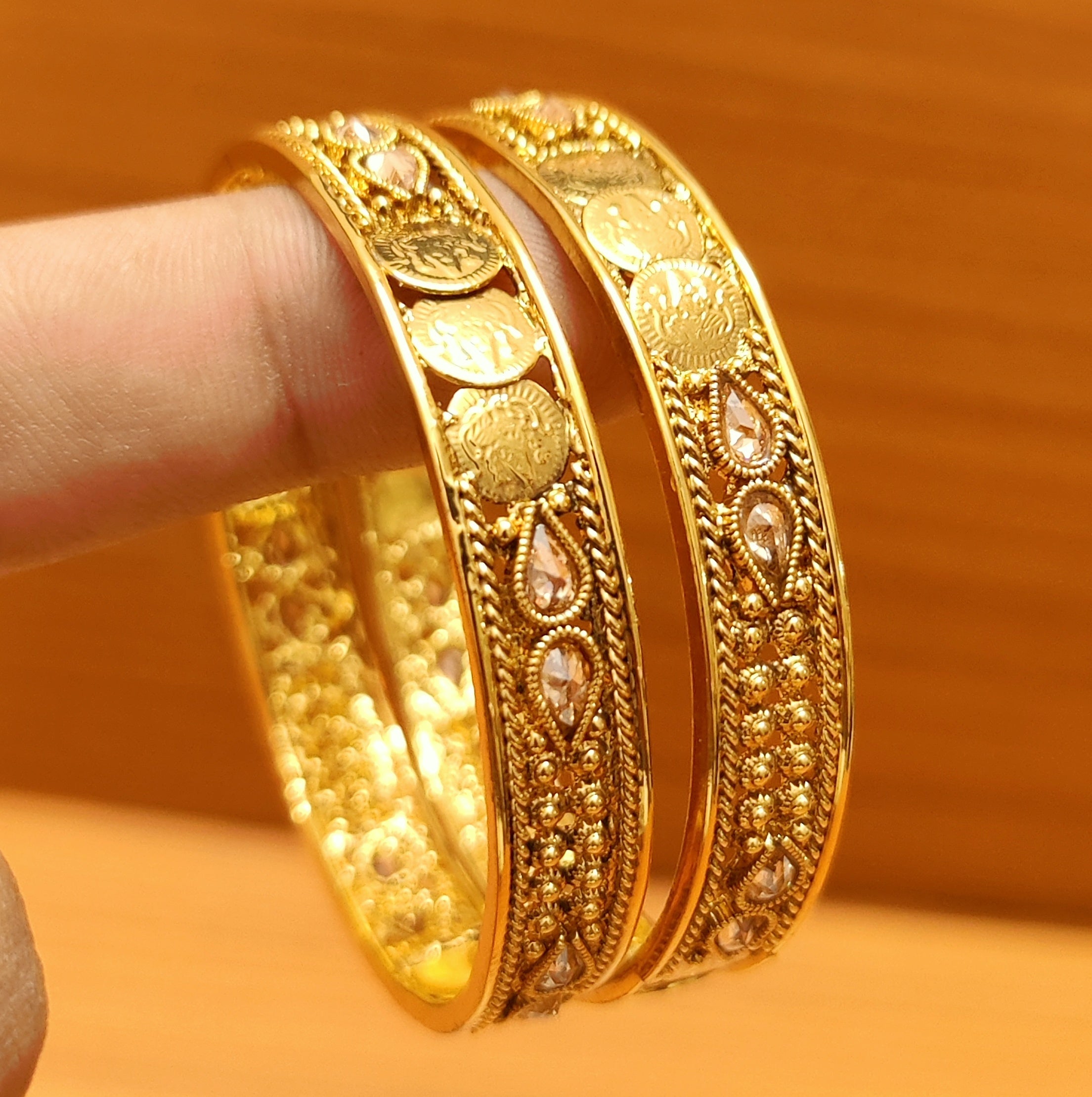 These ginni pattern bangles are handcrafted in copper alloy with imitation zircon stones of very fine quality. These artistic yet modern bangles are plated with fine nickle free gold rhodium to avoid any allergies to the skin.