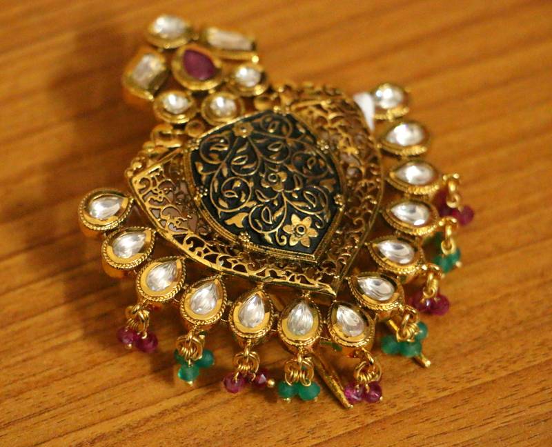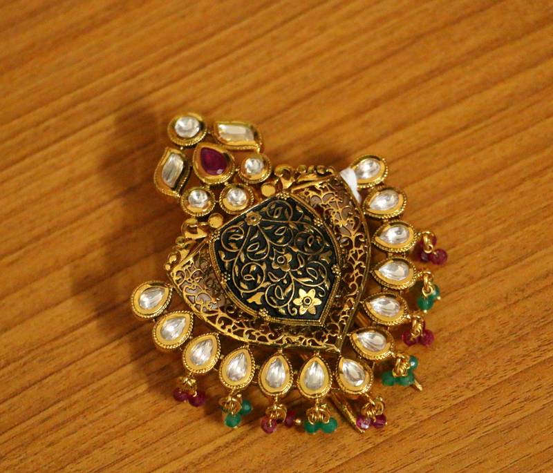 This Beautiful Brooch Is Handcrafted In Copper Alloy With Imitation Ruby & Kundan With Meenakari Work Of Very Fine Quality . This Brooch Is Coated With 18 Kt Gold Polish Which Give Them A Unique Look . An Absolutely Stunning Piece To Own And Are Very Light In Weight.