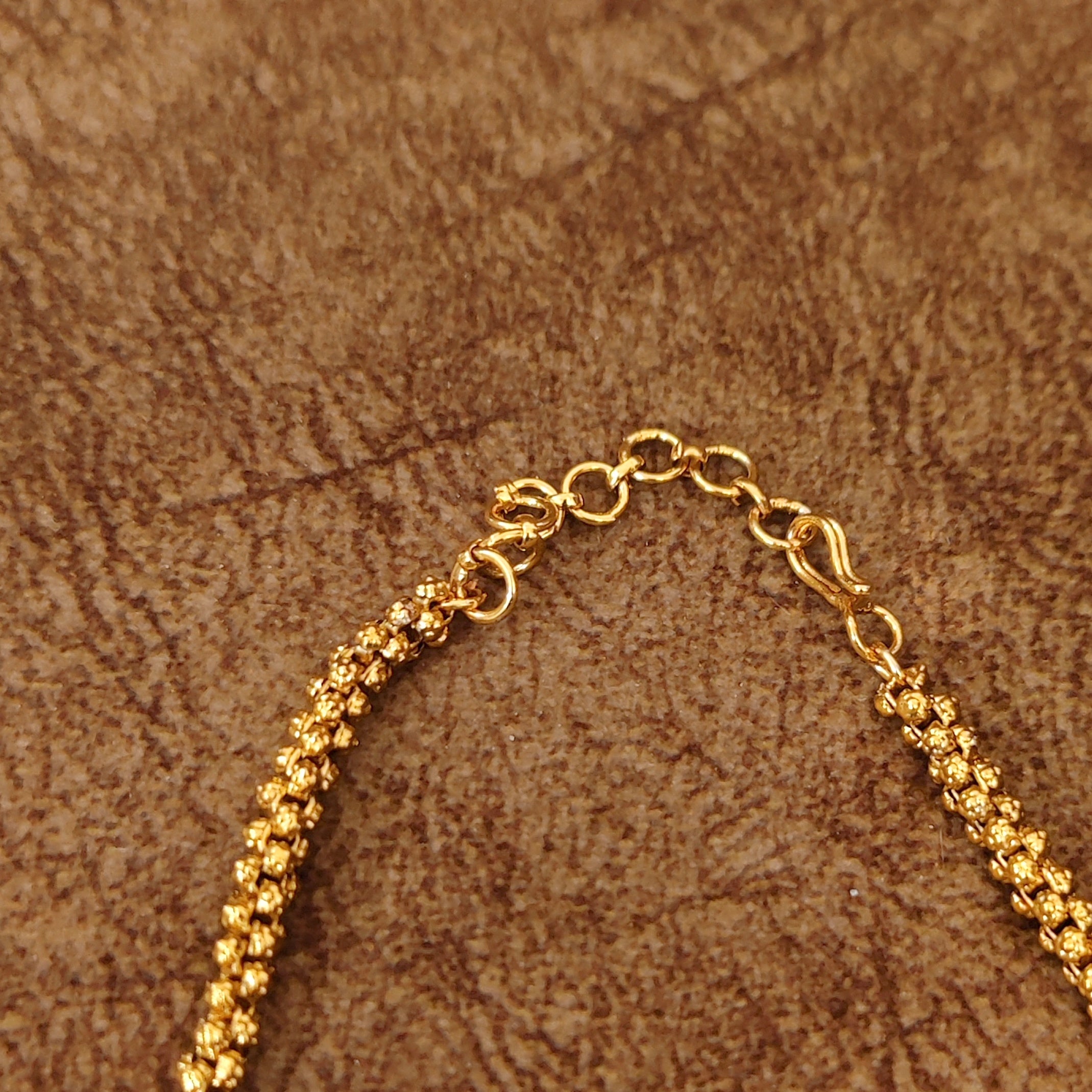 This necklace set is handcrafted in copper alloy with imitation red colour stone and pearls work of very fine quality . the necklace set is very intricate and very light in weight and is plated in 18kt gold plating as done on the real gold jewellery.
