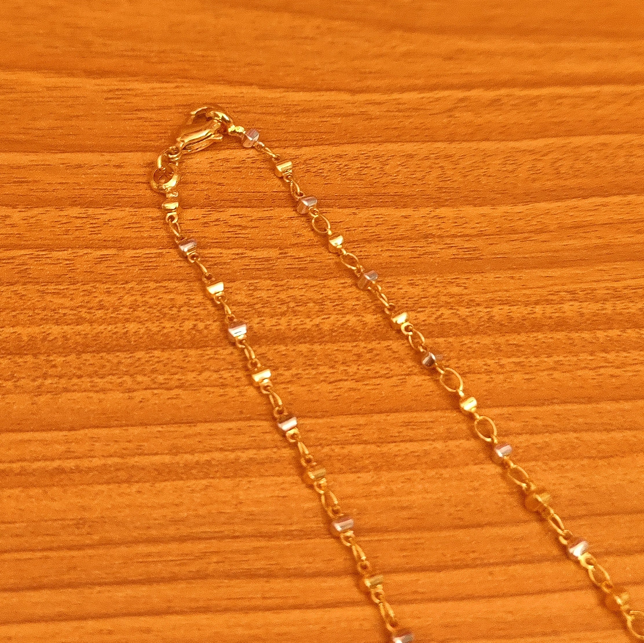 This beautiful gold & silver plated chain is handcrafted in brass of very fine quality . the chain is coated with 18tk gold & silver rhodium plating which gives it a real gold look . an absolutely stunning piece to own and are very light in weight.