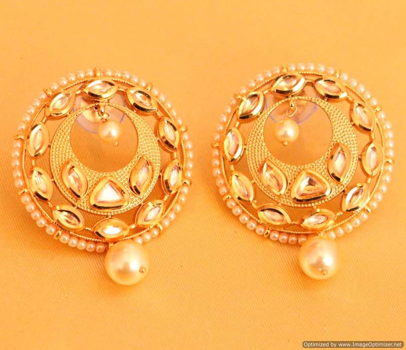 These beautiful earrings are handcrafted in silver alloy with imitation pearl & kundan work of very fine quality. These earrings are coated with 18 kt gold polish which give them a unique look . An absolutely stunning piece to own and are very light in weight.