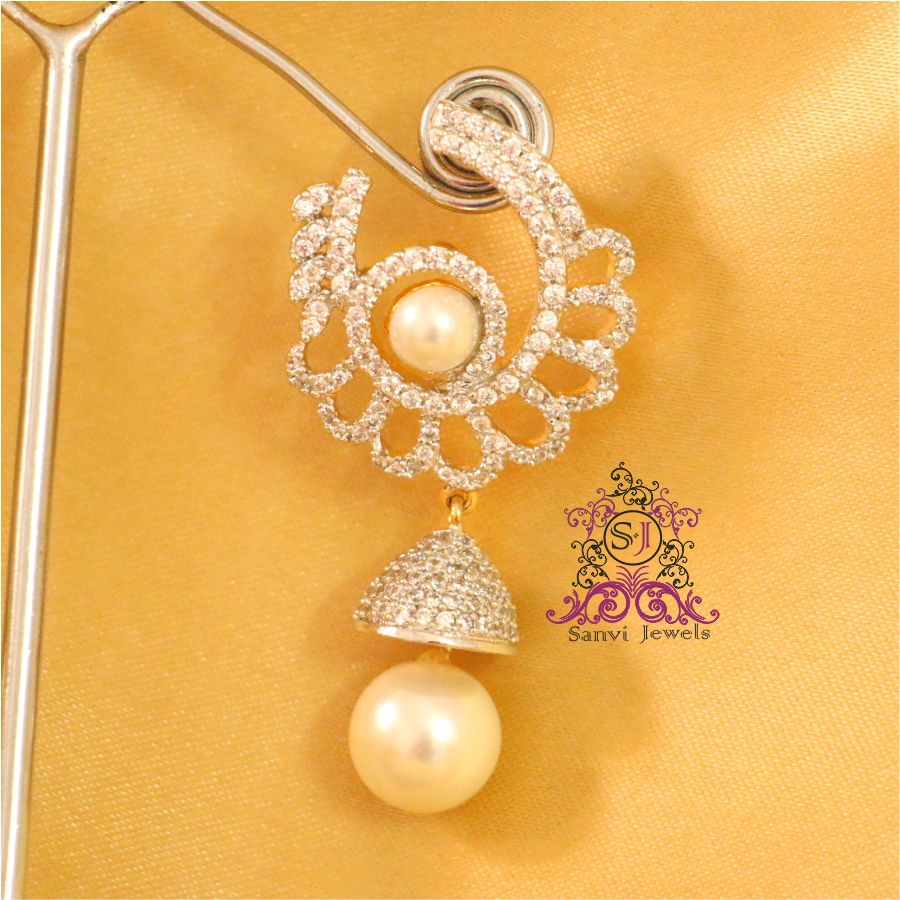 These beautiful Earrings are handcrafted in silver alloy with imitation Zircons of very fine quality and semi precious pearls . These earrings are coated with 18 kt gold polish which give them a unique look . An absolutely stunning piece to own and are very light in weight.