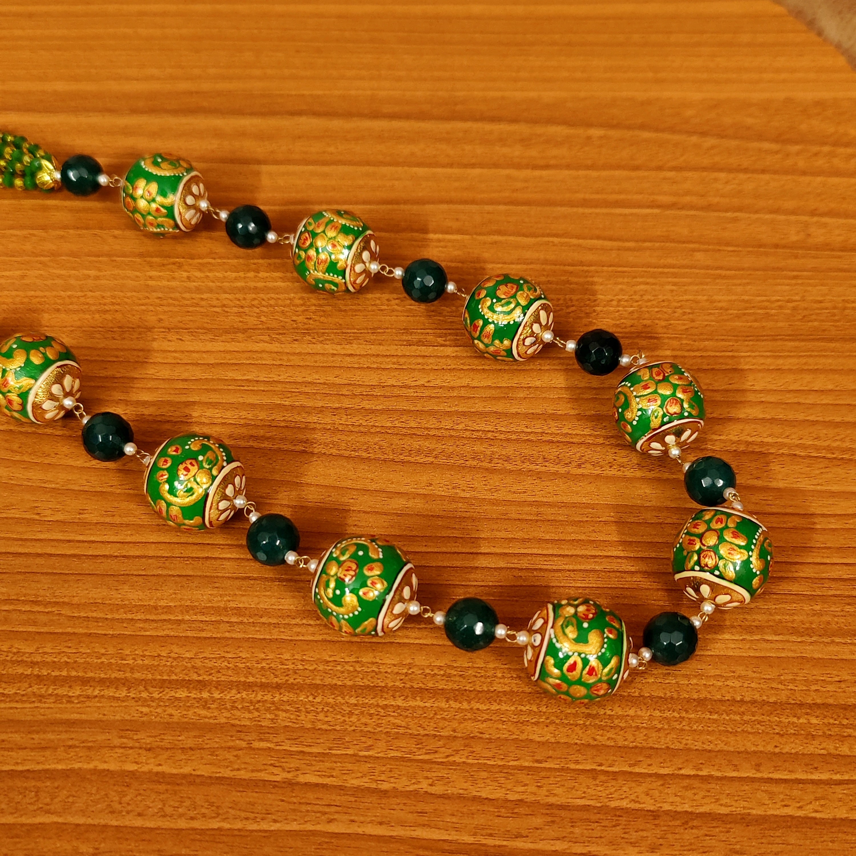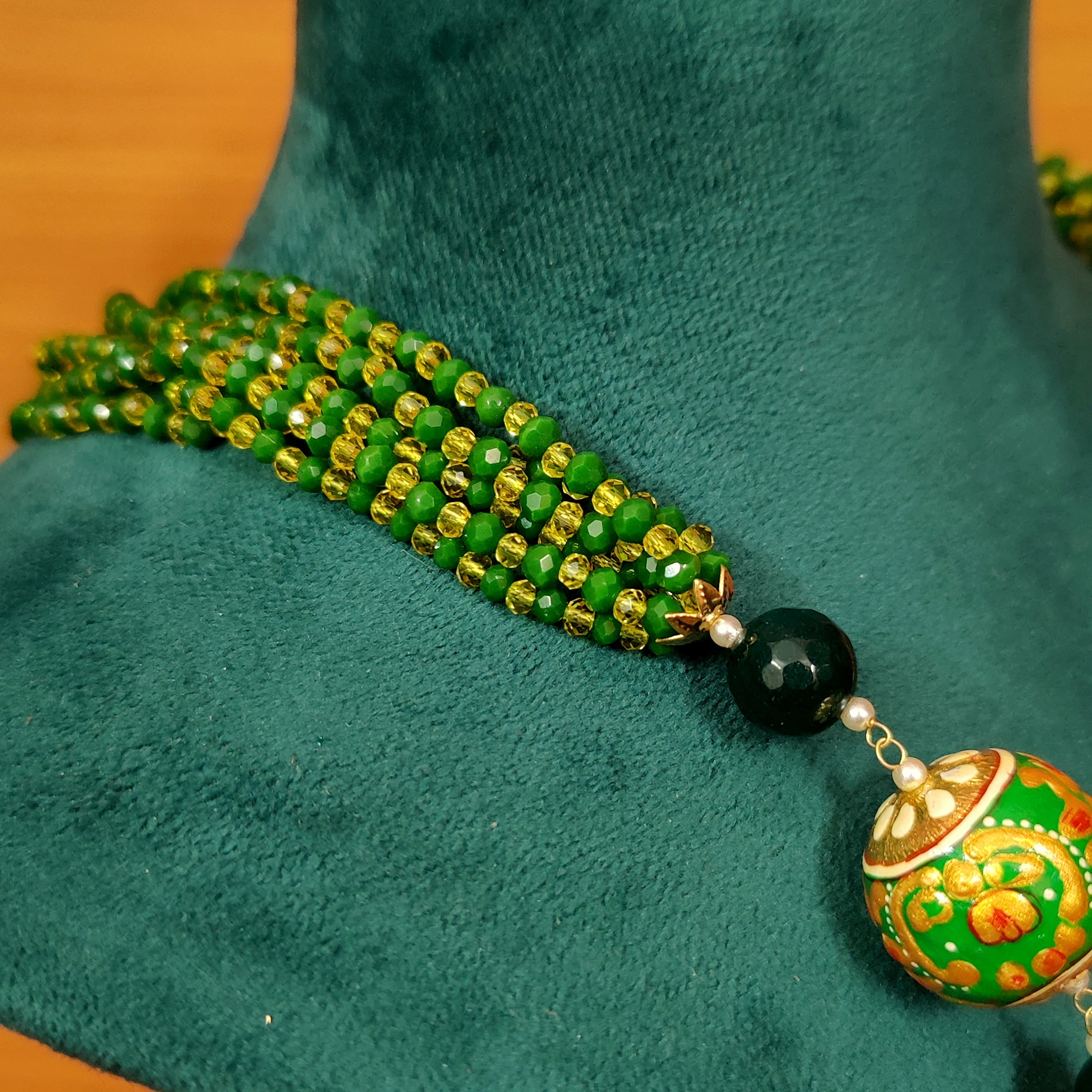 GREEN MEENAKARI BEADS & SEMI PRECIOUS STONE NECKLACE