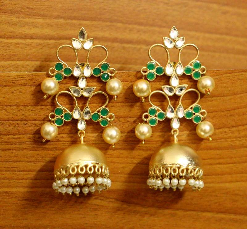 These beautiful earrings are handcrafted in brass alloy with imitation pearls & kundan with matt finishing work of very fine quality. These earrings are coated with 18 kt yellow gold polish which give them a unique look . An absolutely stunning piece to own and are very light in weight.