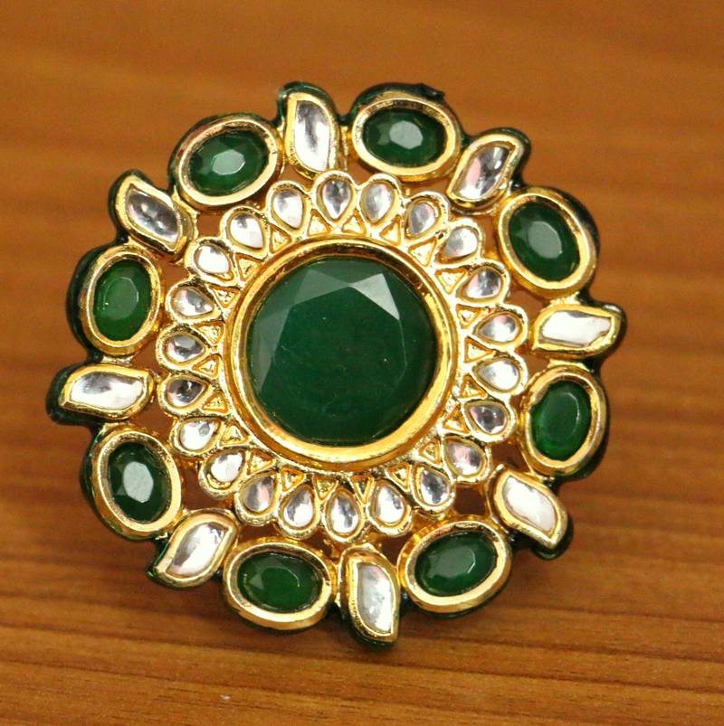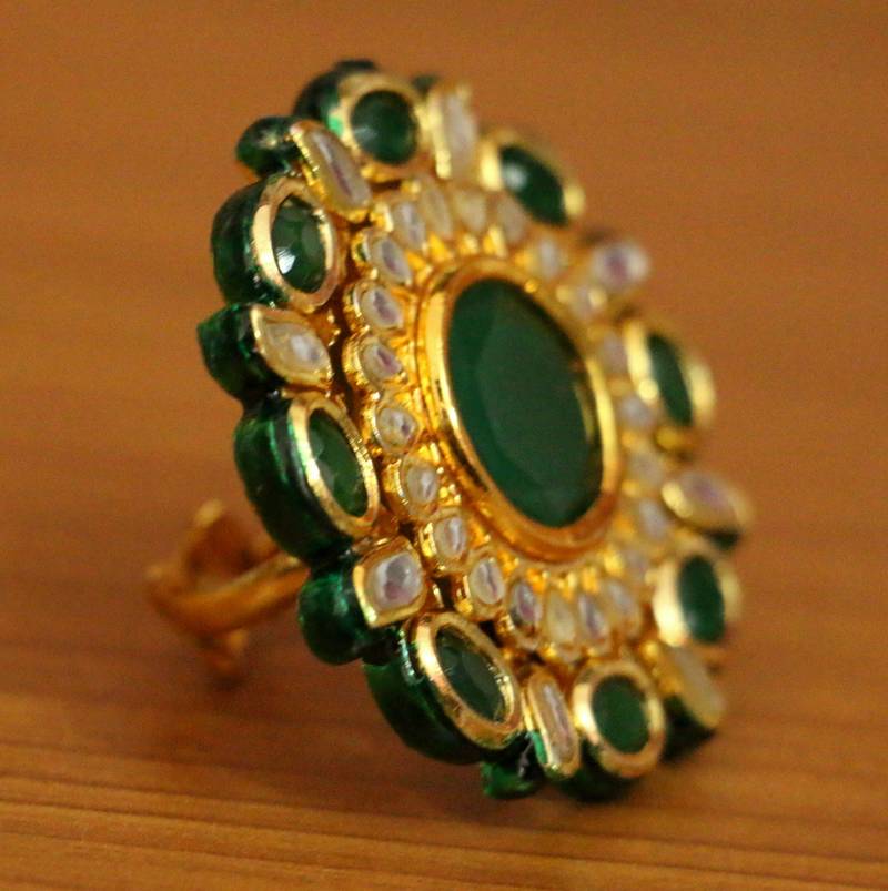 This Kundan Polki Ring Is Handcarfted In Brass Alloy With Imitation Green Onyx & Meenakari Work Of Very Fine Quality , The Ring Is Light In Weight And Plated With 18kt Gold Rhodium To Give It A Real Gold Look.