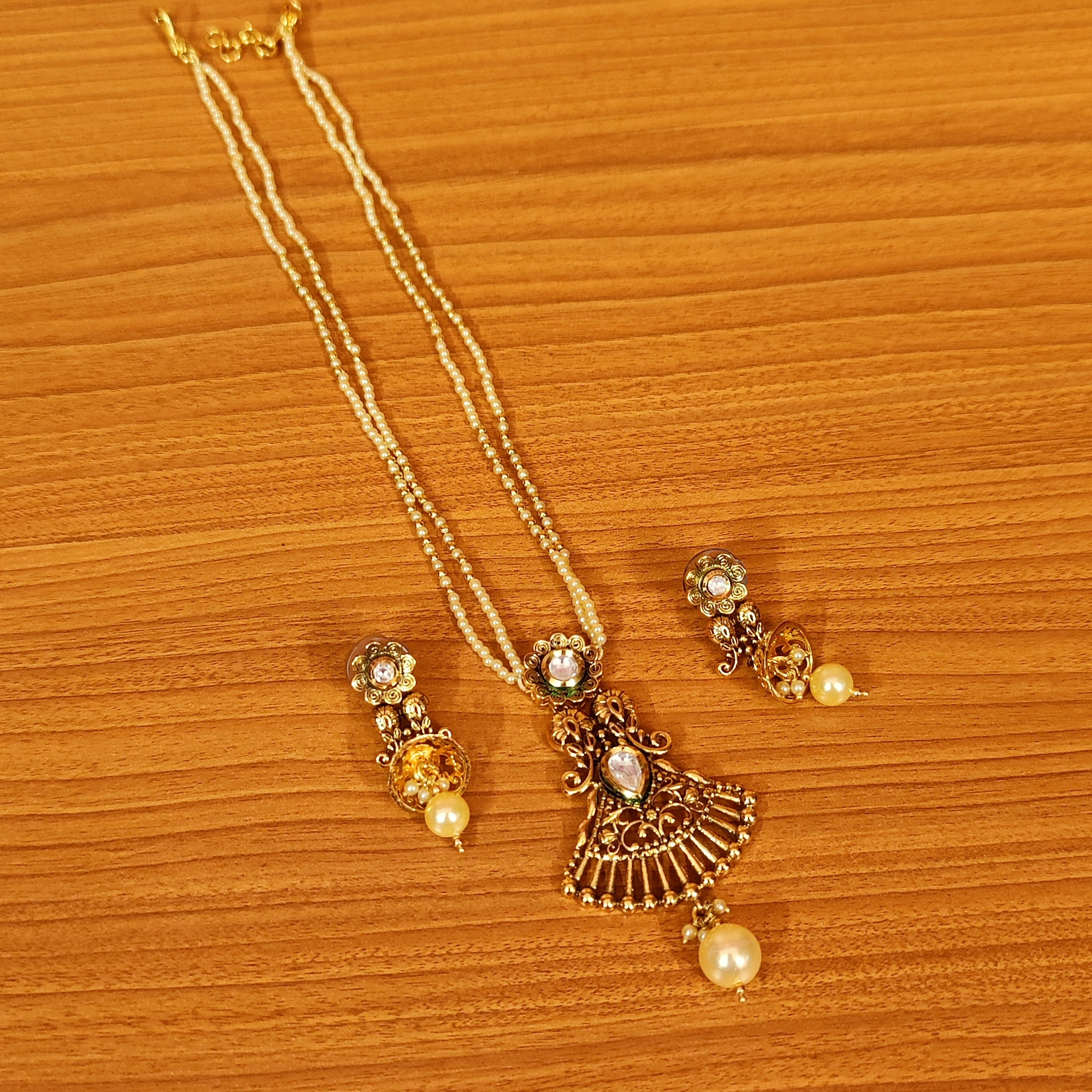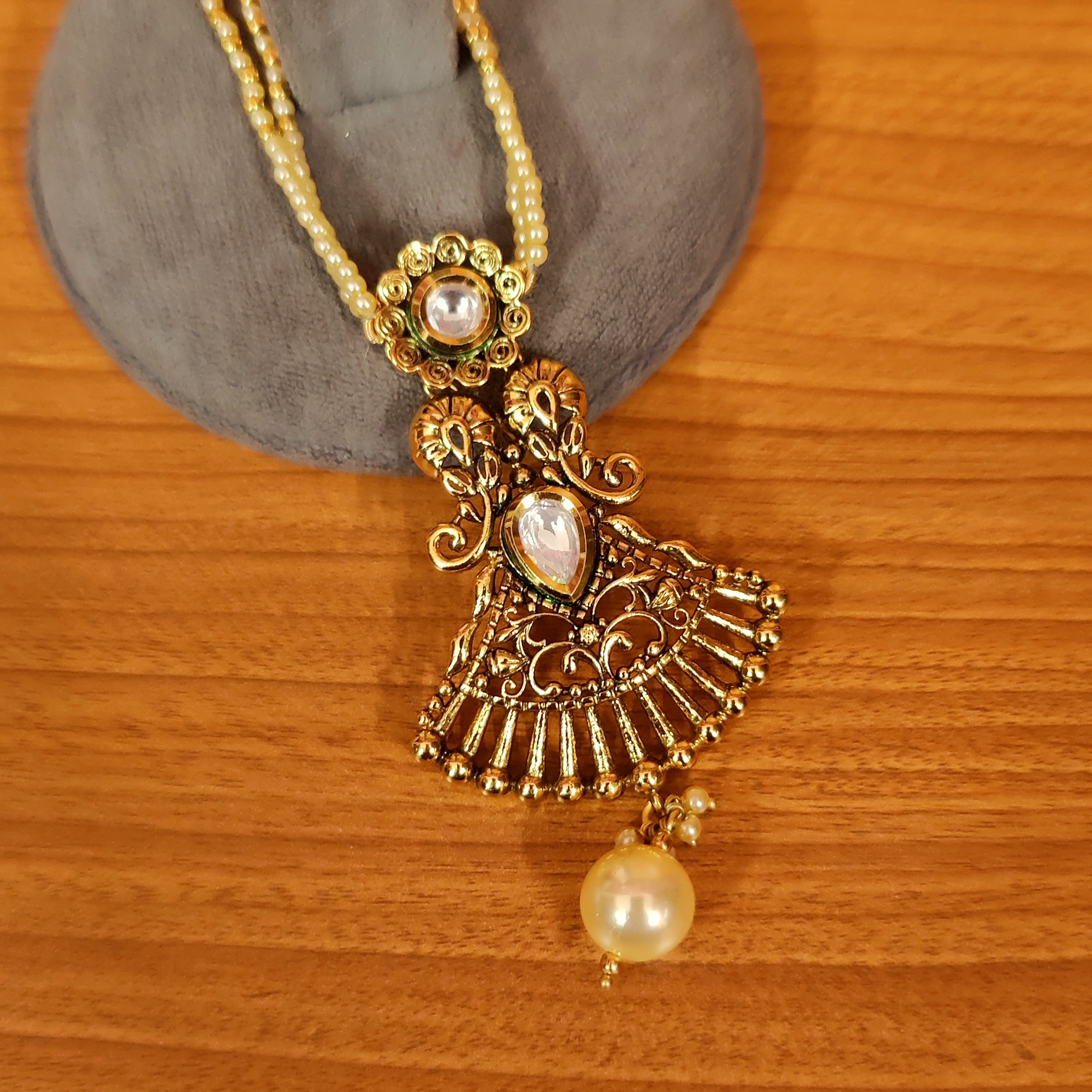 ANTIQUE GOLD LOOK KUNDAN POLKI & PEARL PENDANT SET