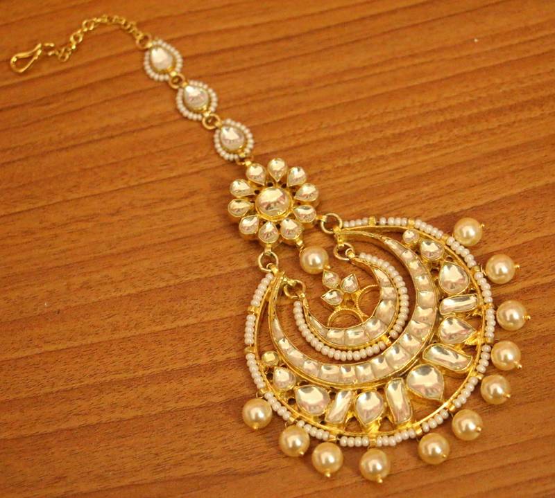 Kundan & Pearl Chaand Baali Bridal Maang Tikka
