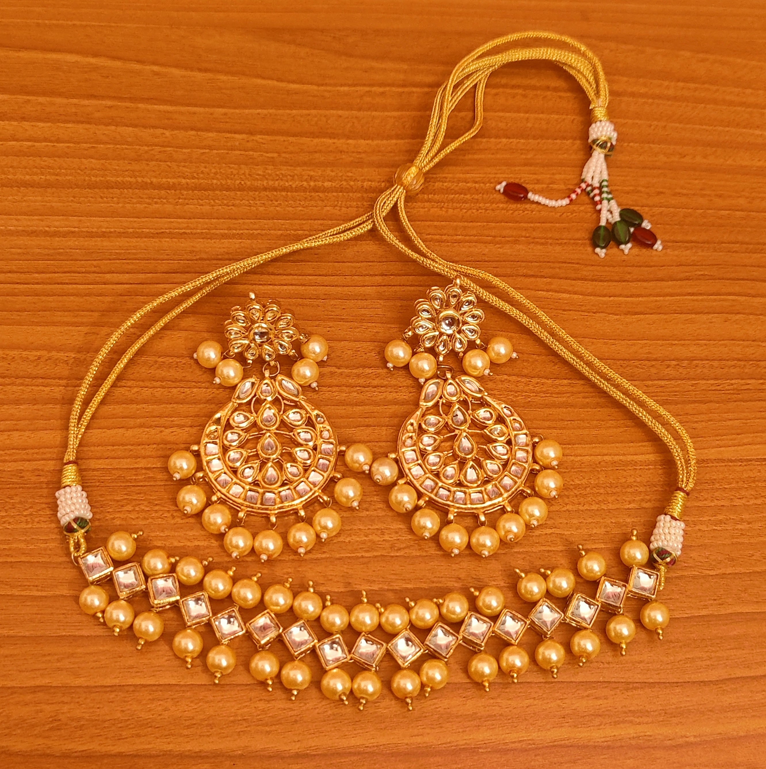 KUNDAN & PEARL MEENAKARI CHOKER NECKLACE SET