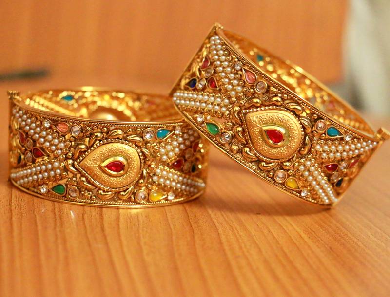 ANTIQUE GOLD PLATED MULTICOLOUR OPENABLE BANGLES