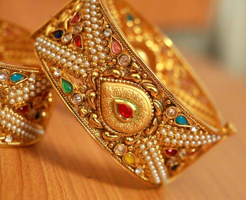 These openable multicolour bangles are handcrafted in copper alloy with imitation pearls & kundan polki of very fine quality. These artistic yet modern bangles are plated with fine nickle free gold rhodium to avoid any allergies to the skin.