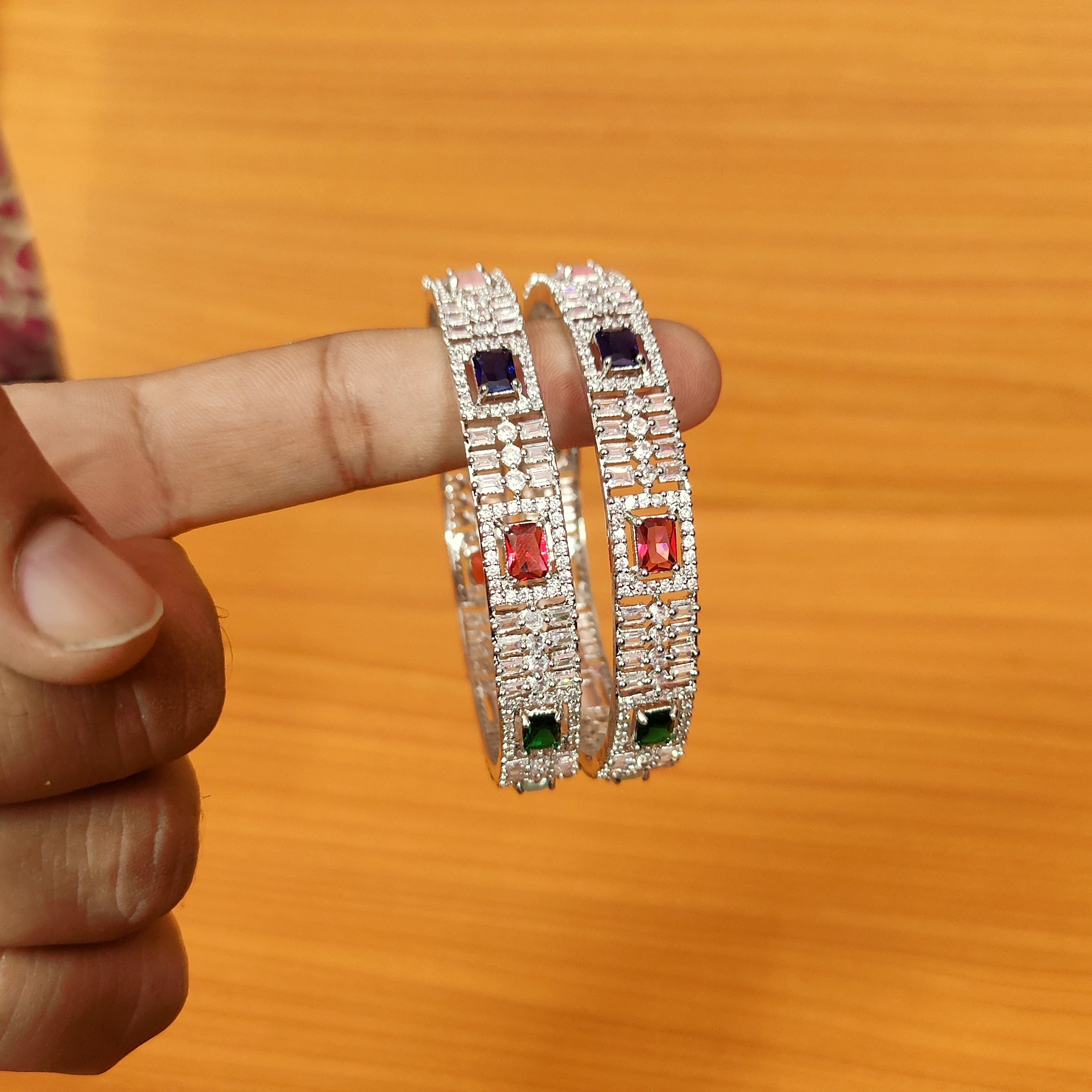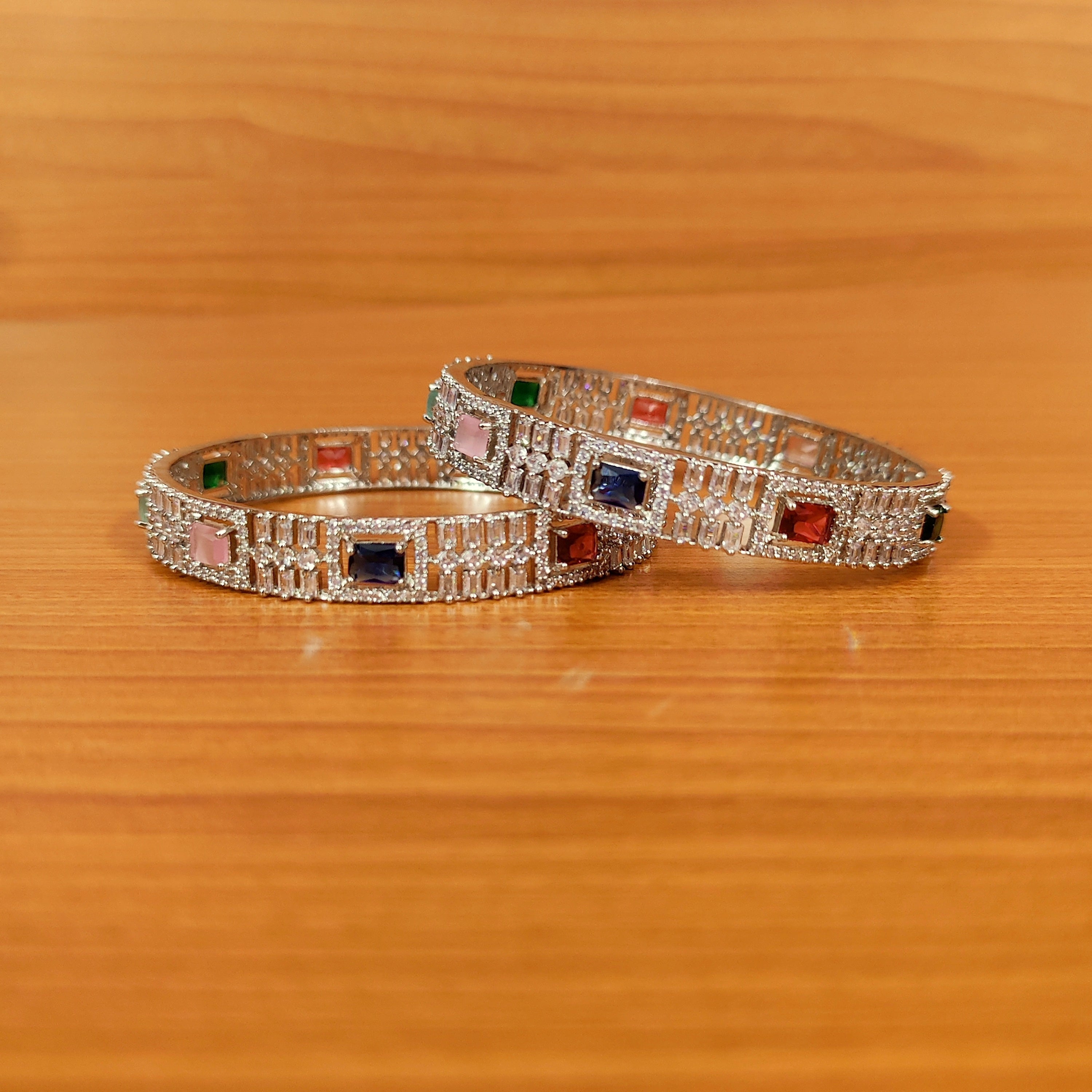 These beautiful bangles are handcrafted in silver alloy with imitation multicolour stone & american diamond stones of very fine quality. These bangles are coated with 18 kt rose gold plating that gives a real look to the design and comes as a set of 2 bangles.