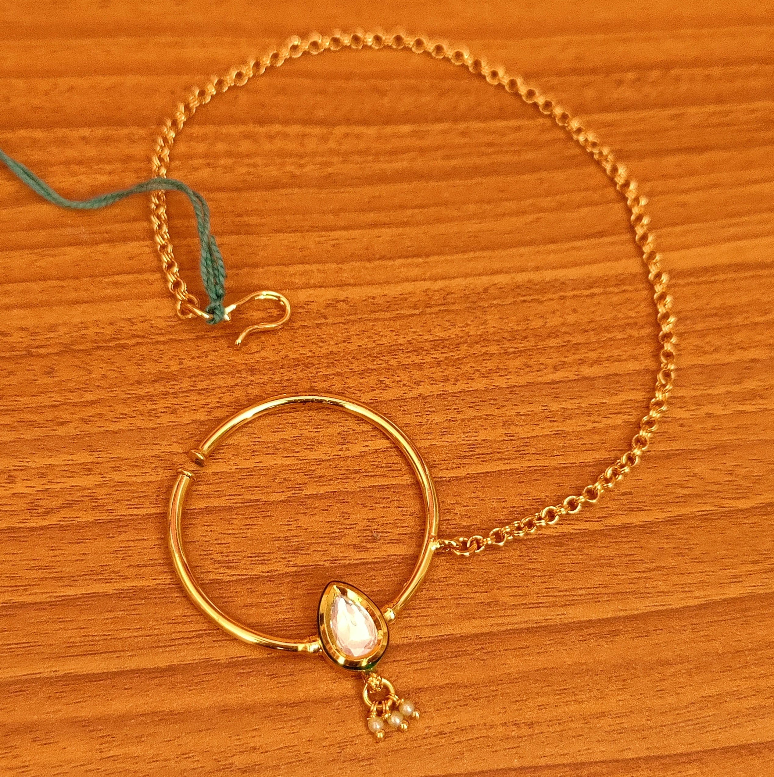 PEAR SHAPED SINGLE KUNDAN GOLD PLATED BRIDAL NOSE RING