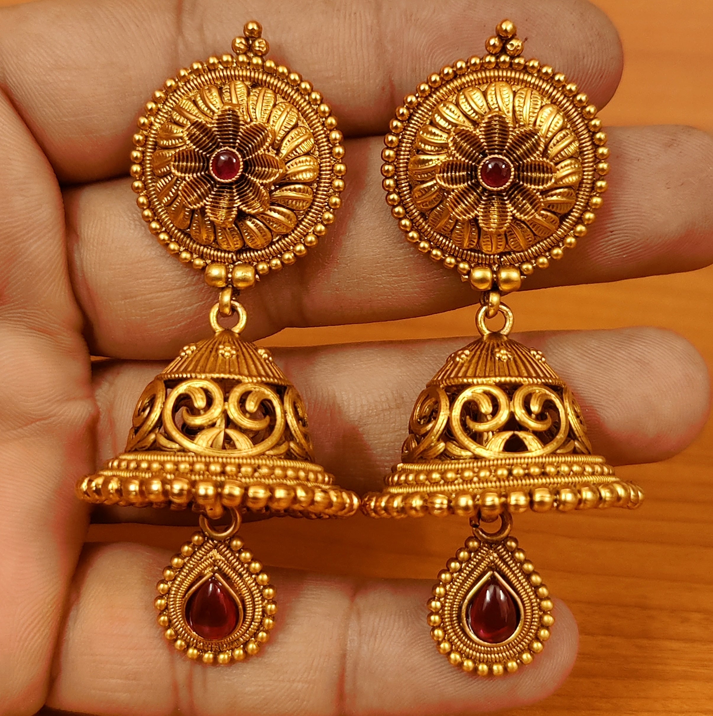 REAL GOLD LOOK RED KEMPU STONE JHUMKA'S