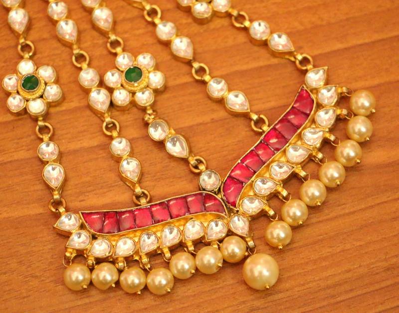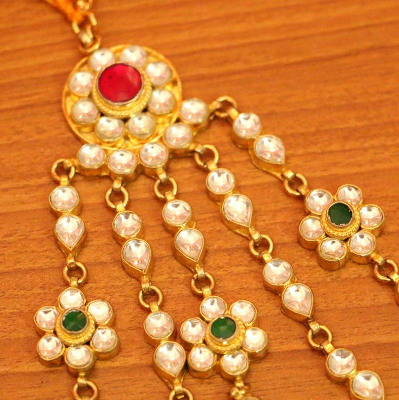 - Material: Brass Alloy, Kundan, Pearls, Yellow Gold