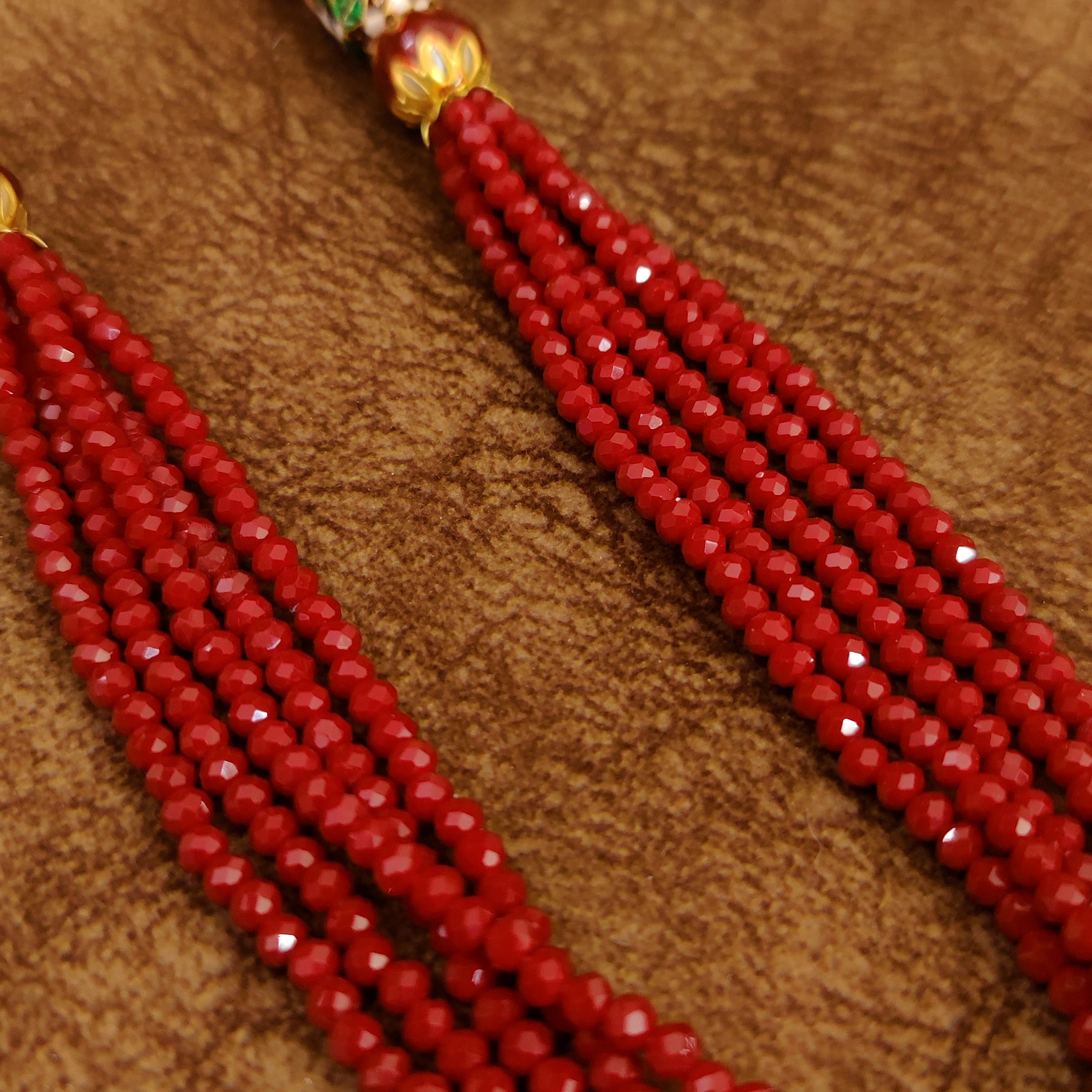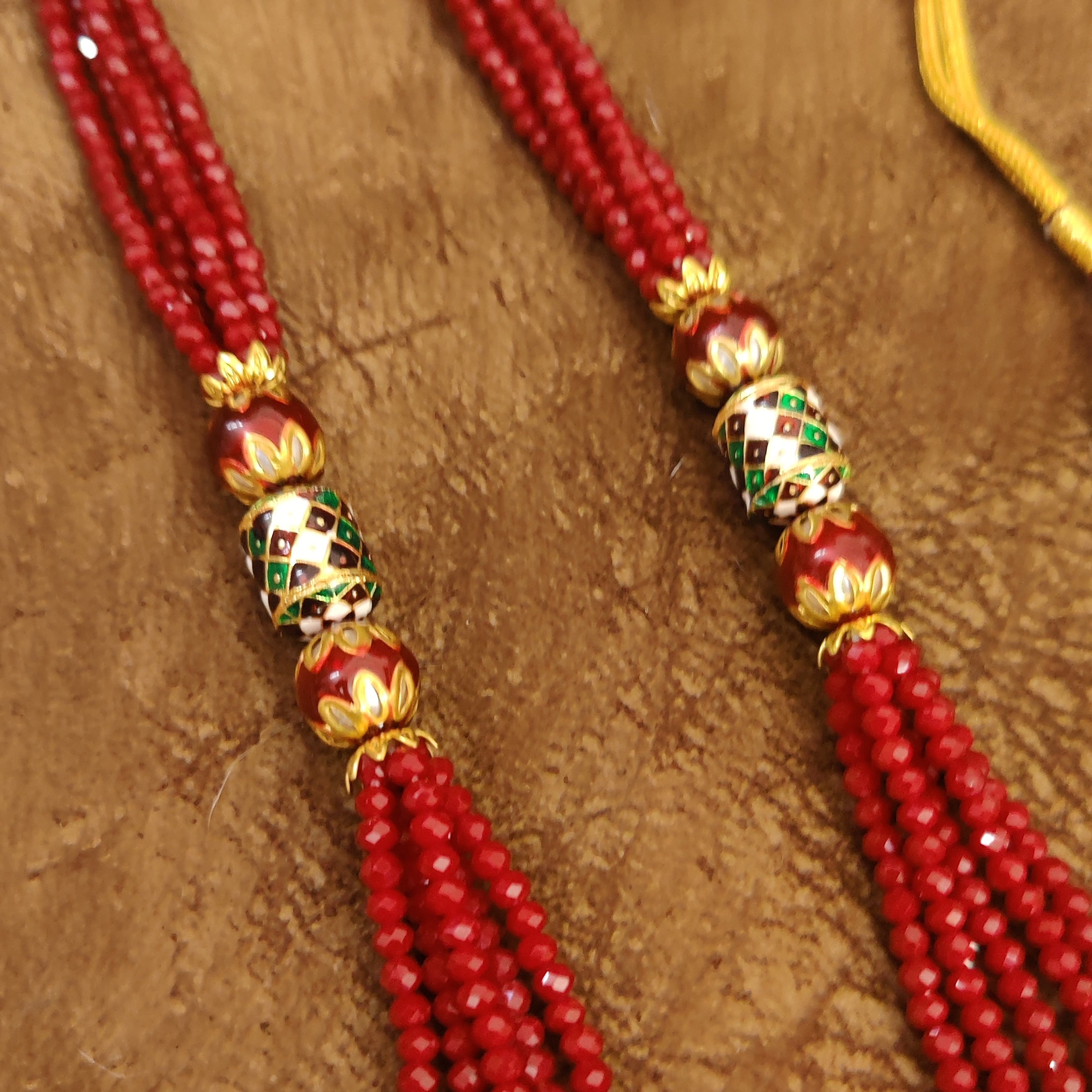 This beautiful necklace is handcrafted in beaded alloy with imitation red crystal work of very fine quality . This necklace are coated with antique gold polish bead which give them a unique look . An absolutely stunning piece to own and are very light in weight.