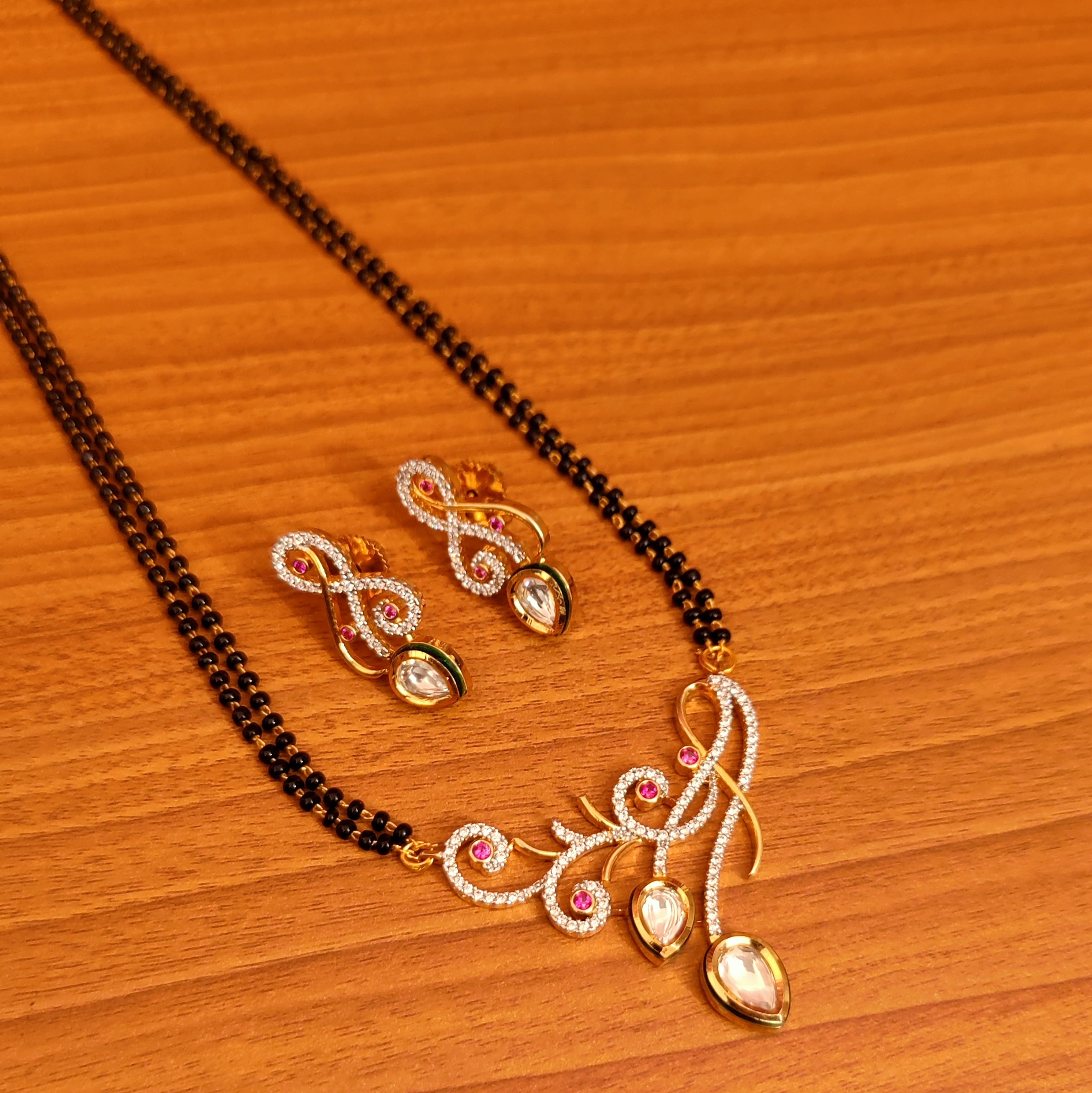 RUBY KUNDAN & CZ DIAMOND LOOK FINE MANGALSUTRA